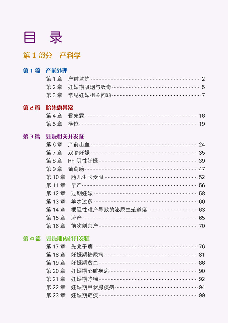 原书由Jaypee Brothers Medical Publishers(P) Ltd.出版。本书是基于妇产科最新指南编写的一本指导临床医生快速诊断与治疗的袖珍手册。全书共分两个部分,其中产科部分主要介绍了产前处理、胎位异常、妊娠相关并发症、妊娠合并内科疾病及产后异常的诊断与处理;妇科部分则主要介绍了月经异常、良性肿瘤、妊娠期感染、生殖道恶性肿瘤、疼痛等的诊断与治疗。每部分均以流程图、表格、临床照片或插图方式进行论述,言简意赅,清晰明了,便于临床医生阅读与掌握。