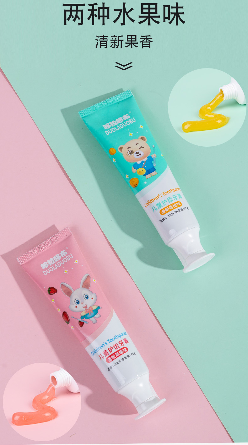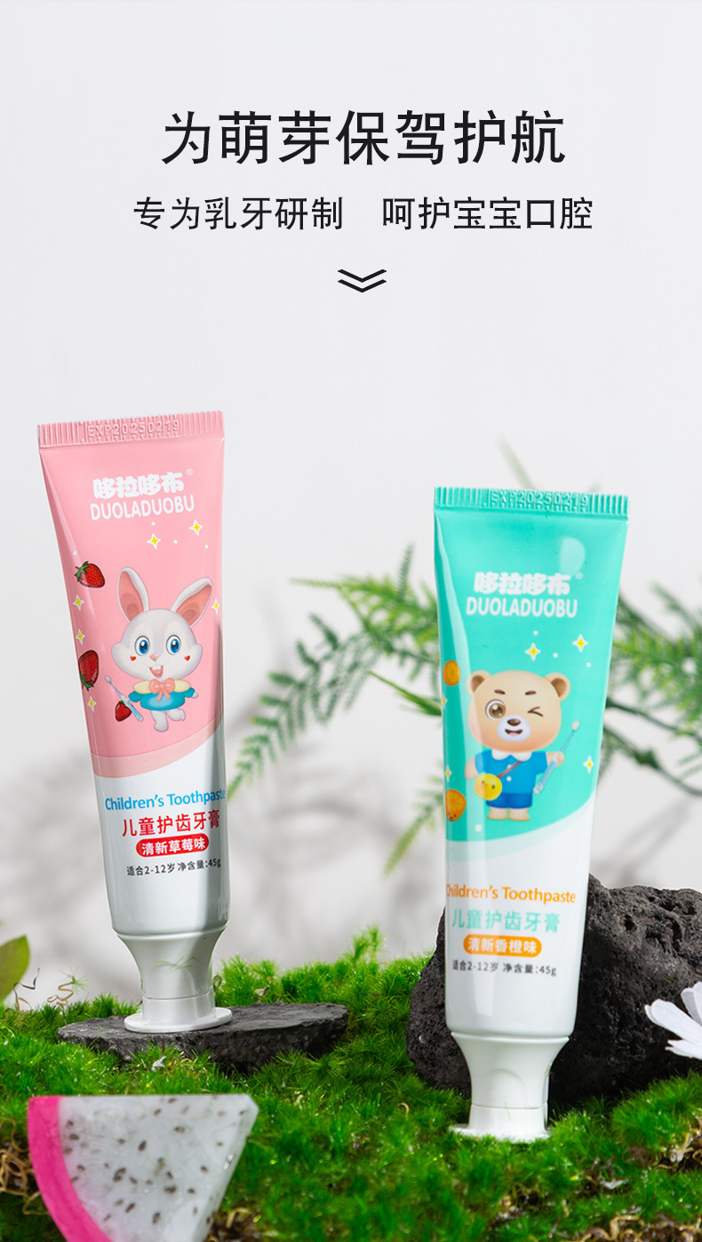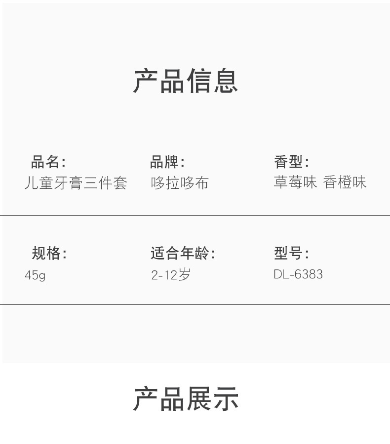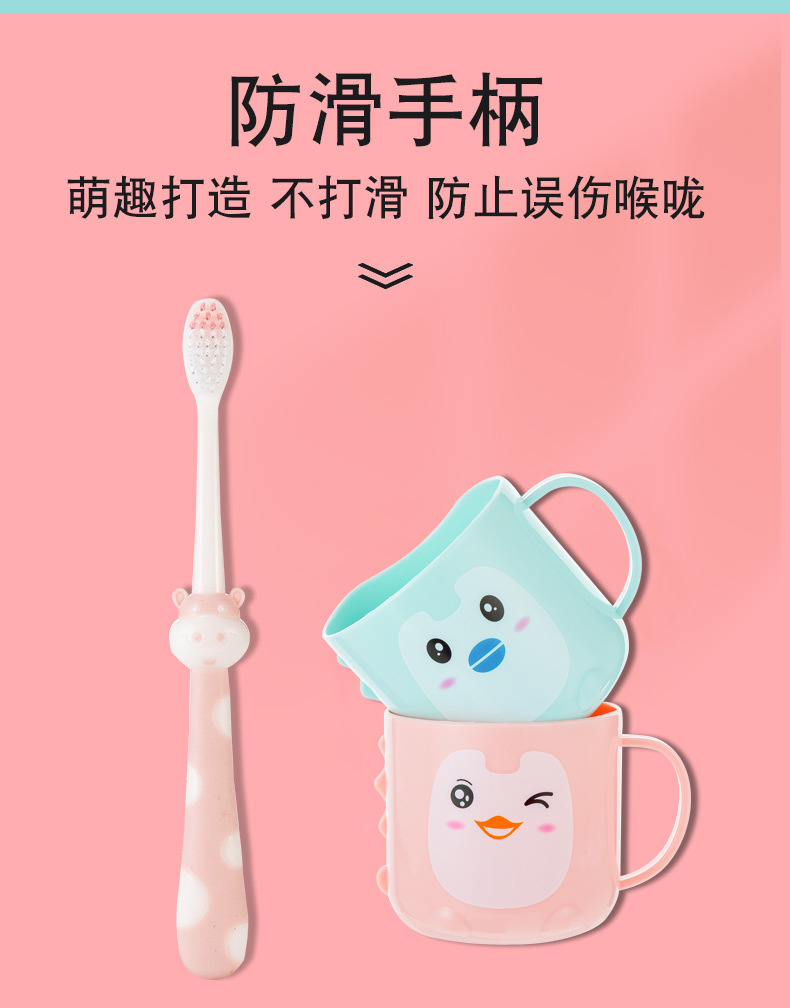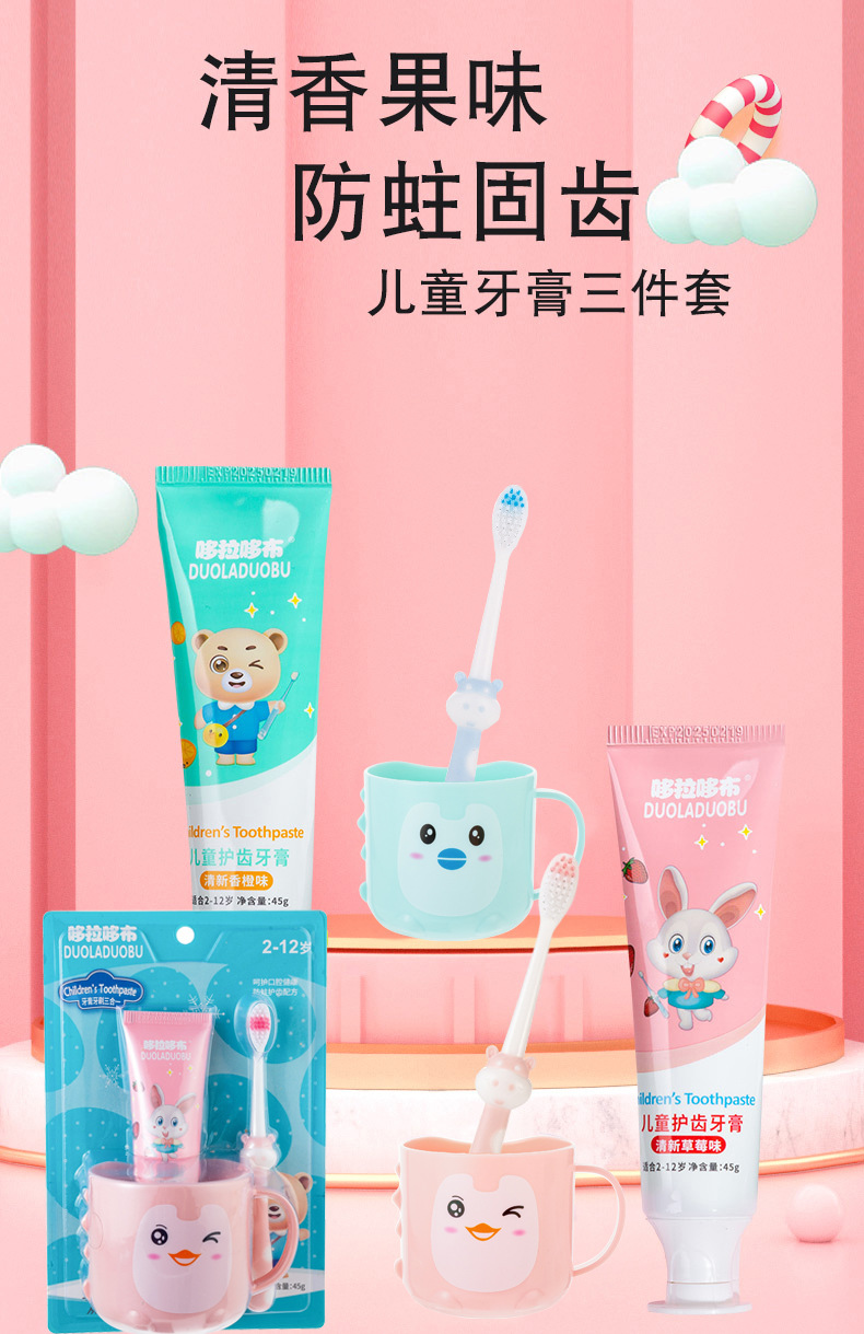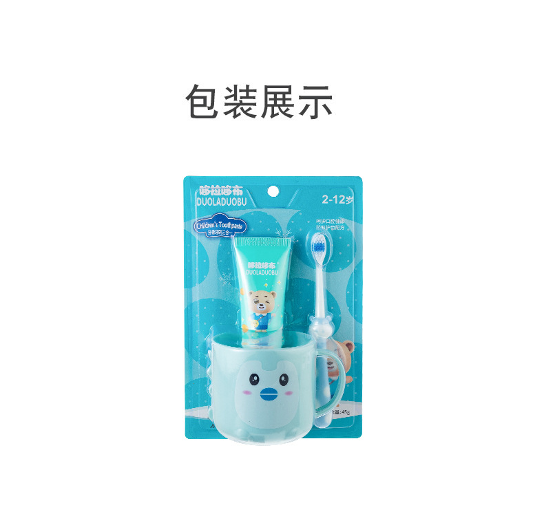 【清香果味,防蛀固齿,儿童牙膏三件套】新款宝宝刷牙牙杯牙膏 牙刷套装 低氟牙膏防蛀三件套-QQ