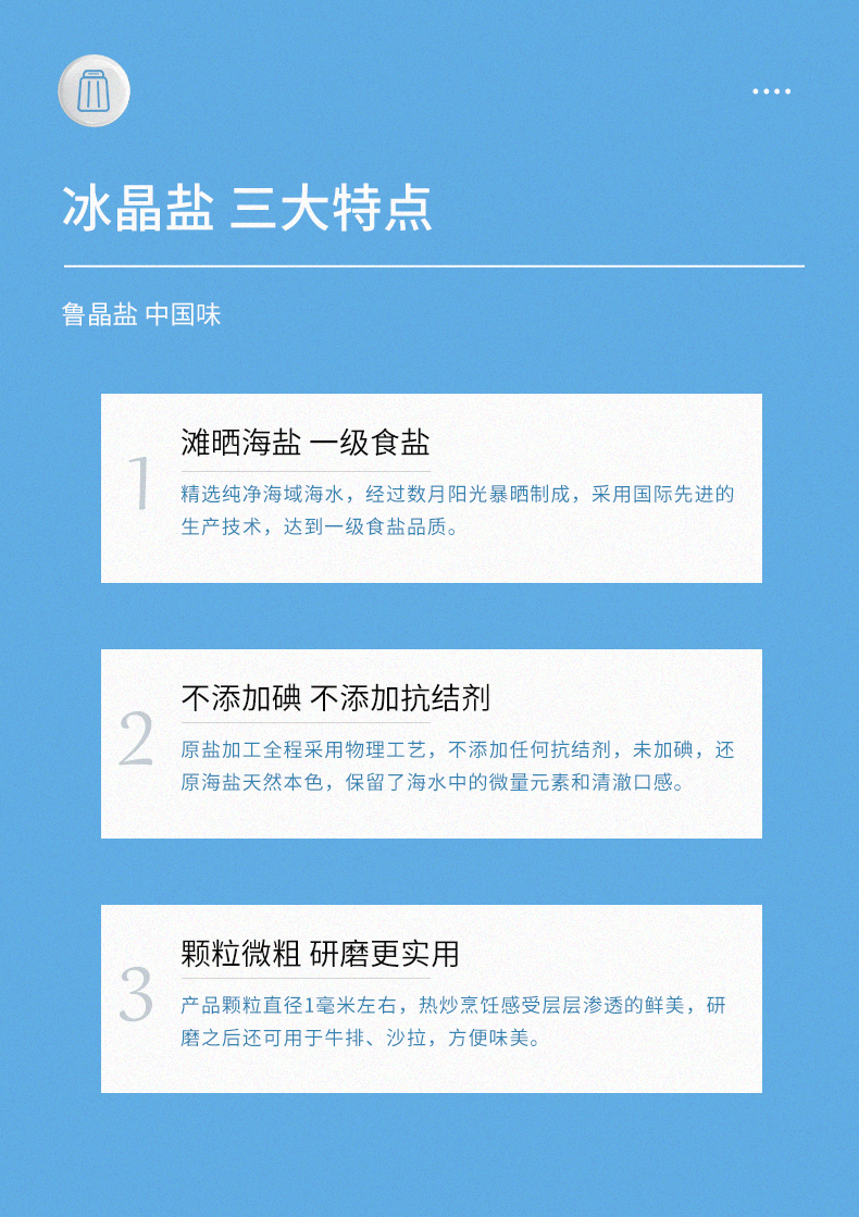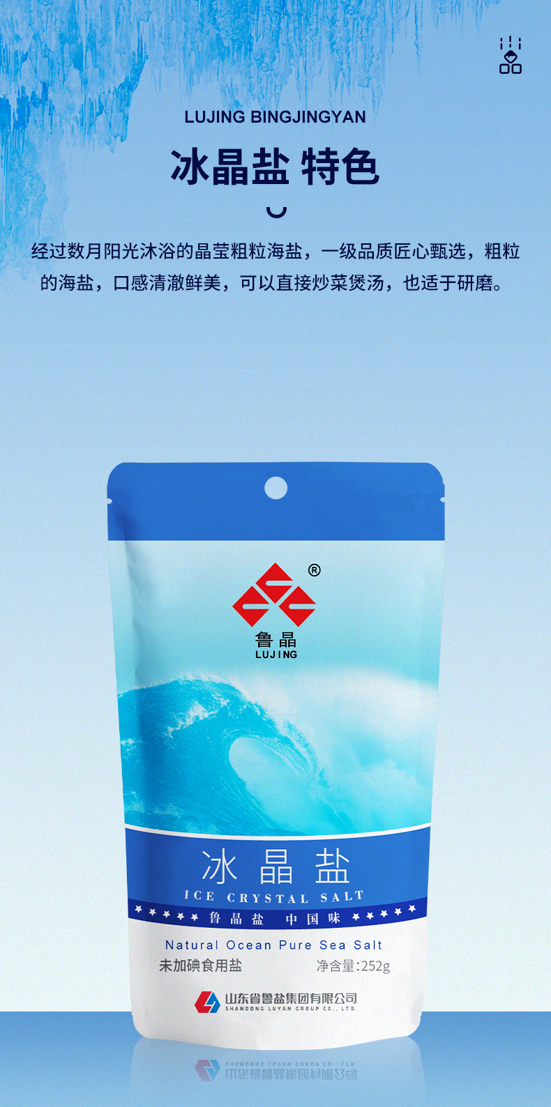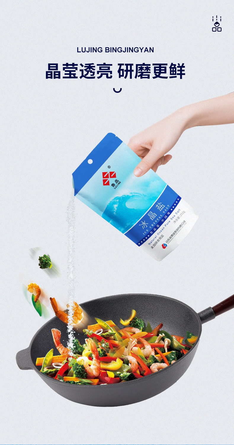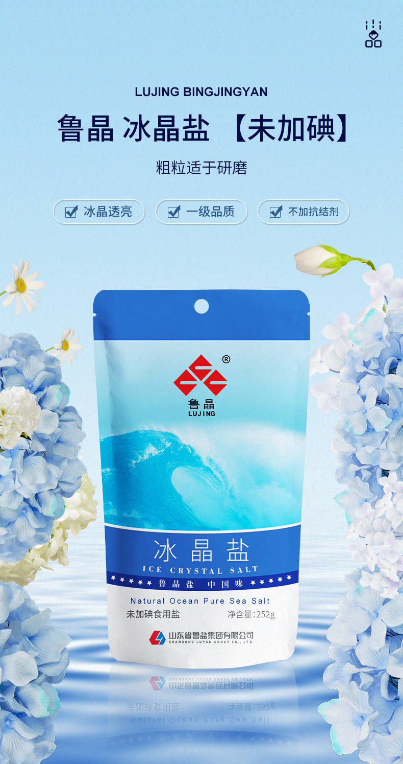 买3送3】鲁晶冰晶盐未加碘盐252g*3袋无抗结剂无碘粗粒海盐