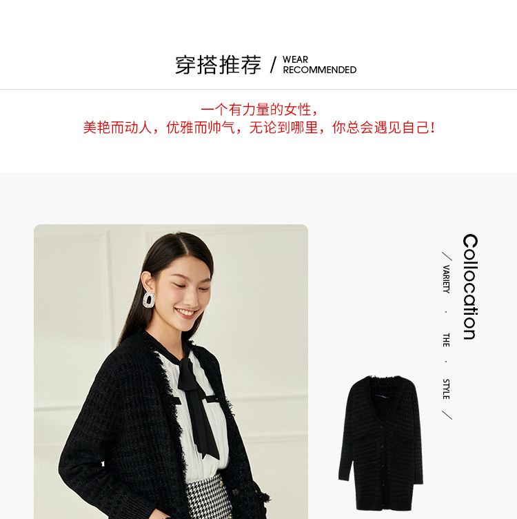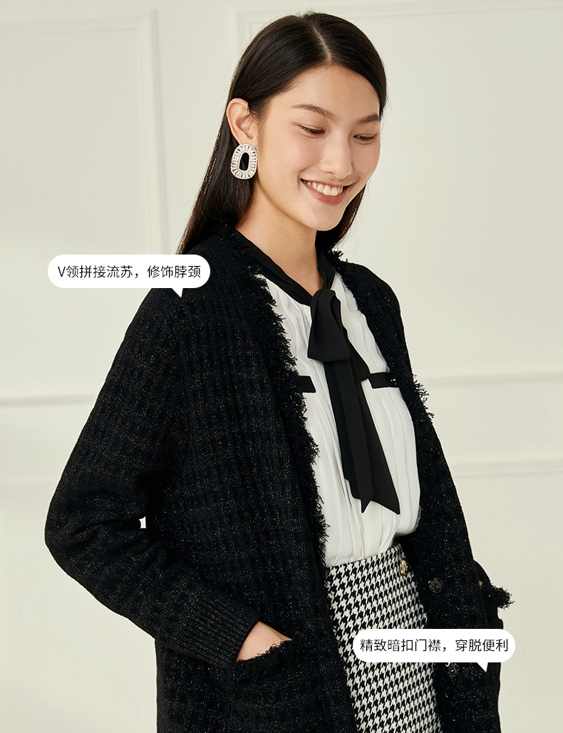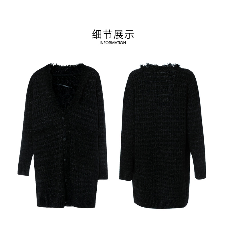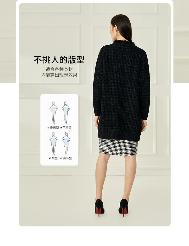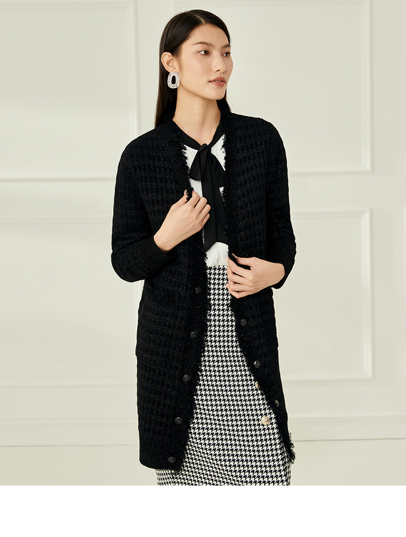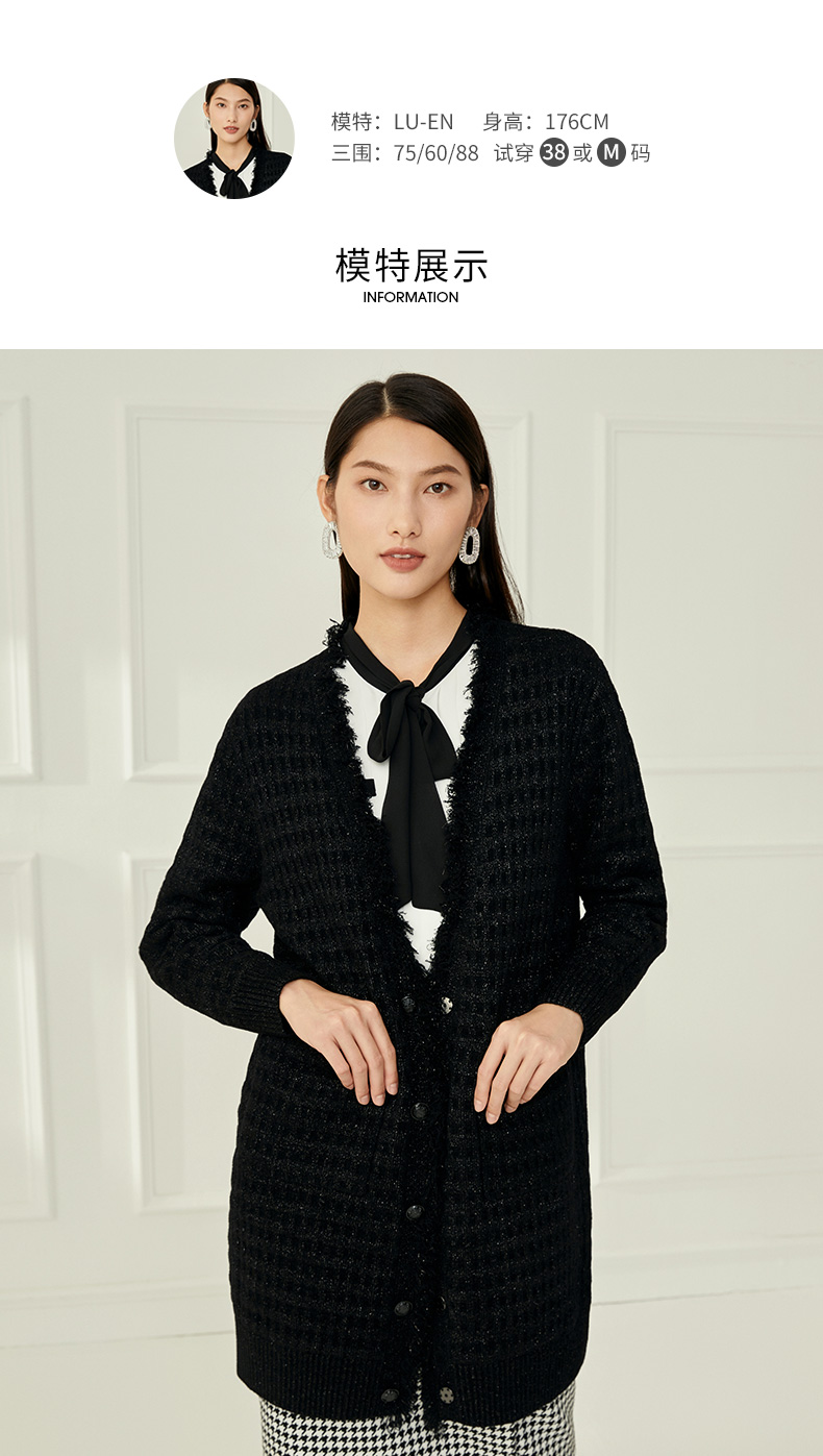 EITIE爱特爱冬季新款款时尚百搭纯色V领针织衫长外套女6801523