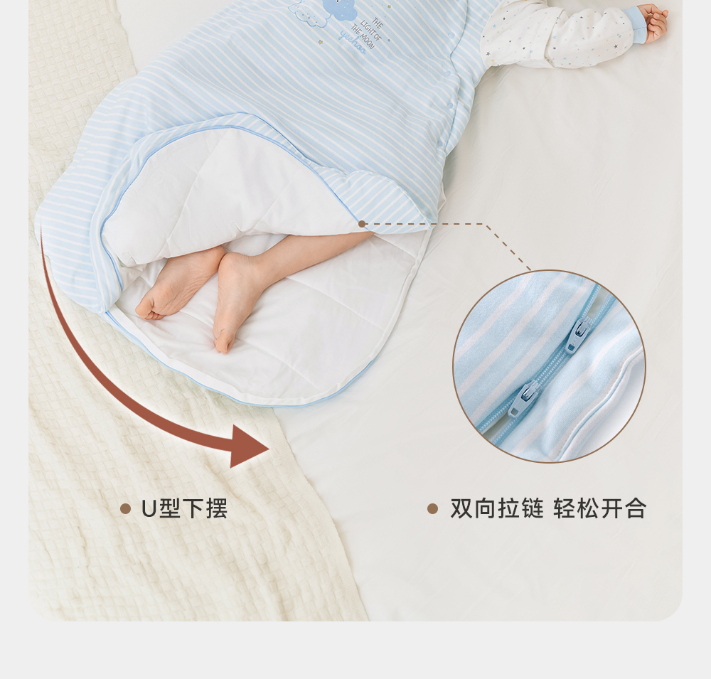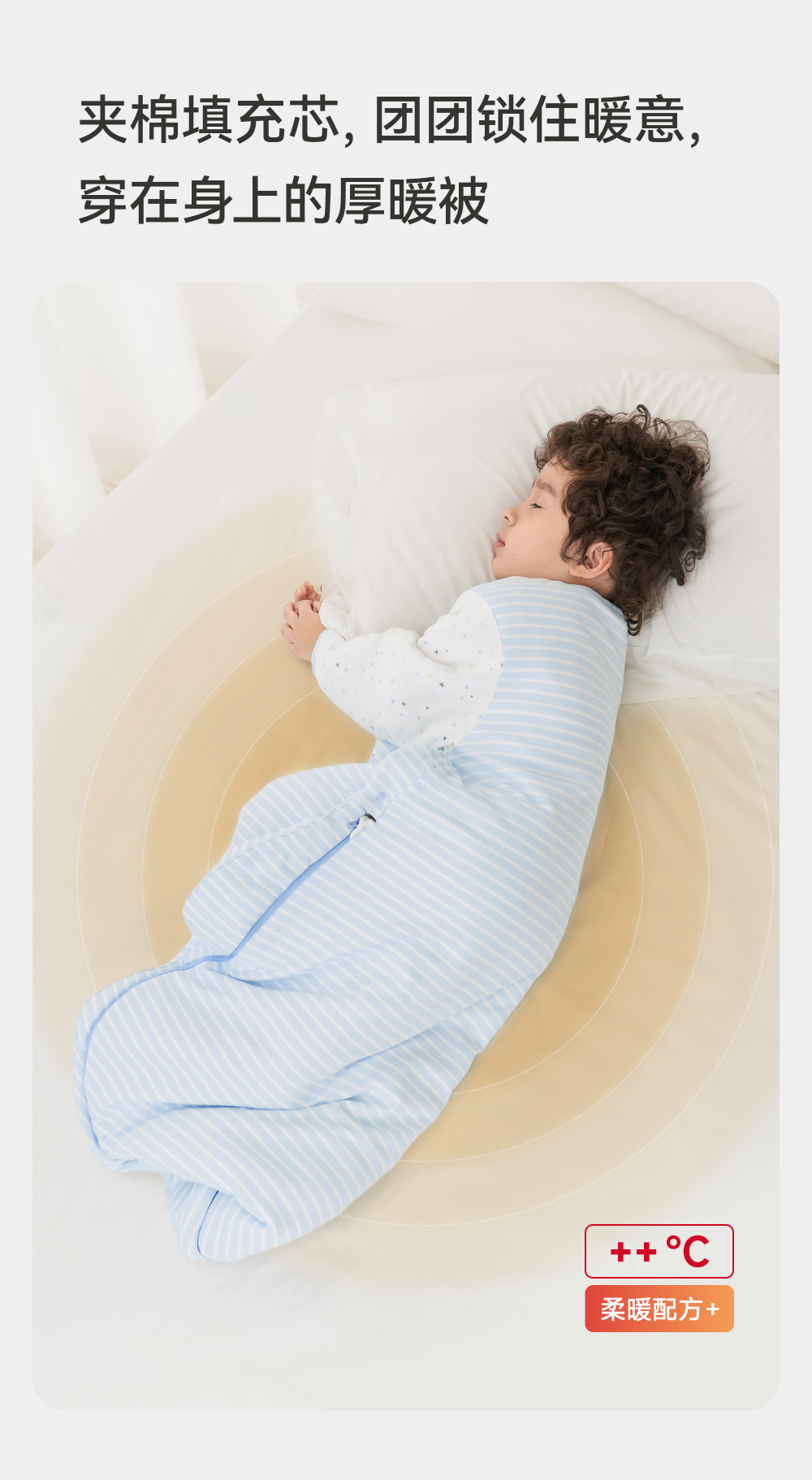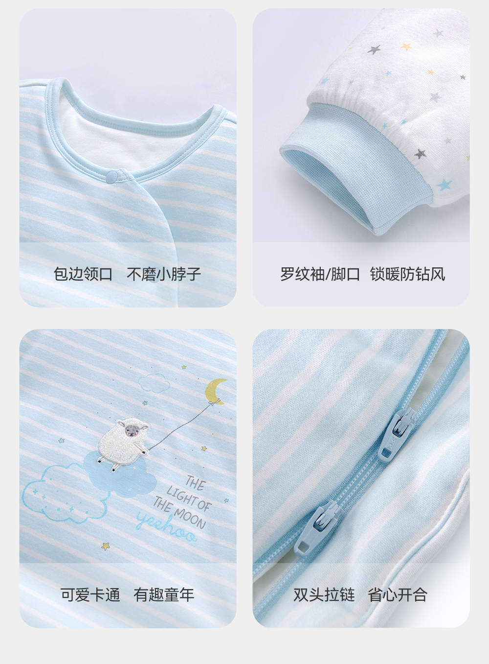 英氏初生婴儿睡袋不分腿长袖防踢被柔软床品 秋冬款