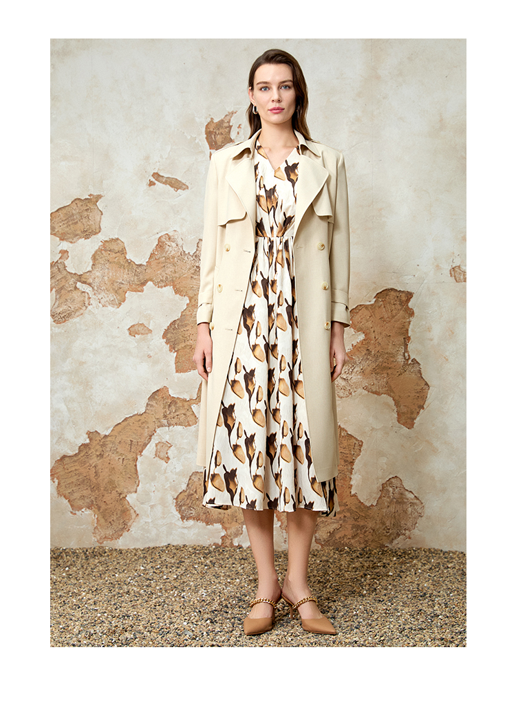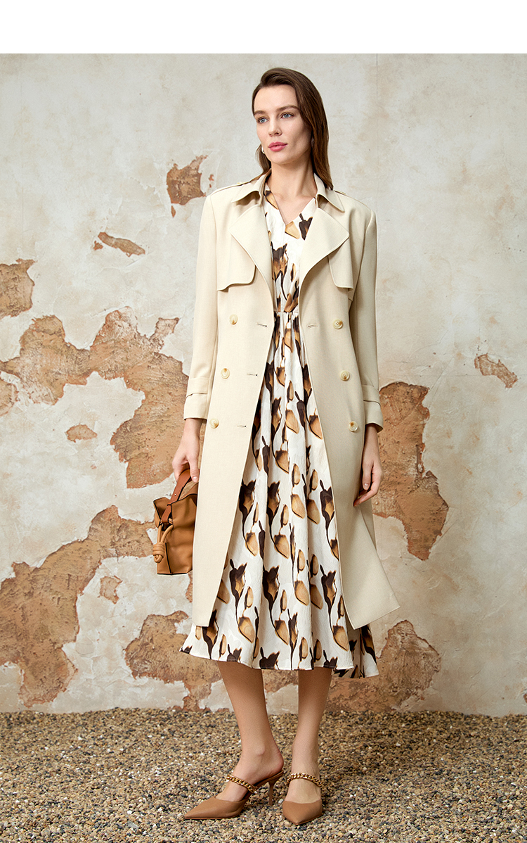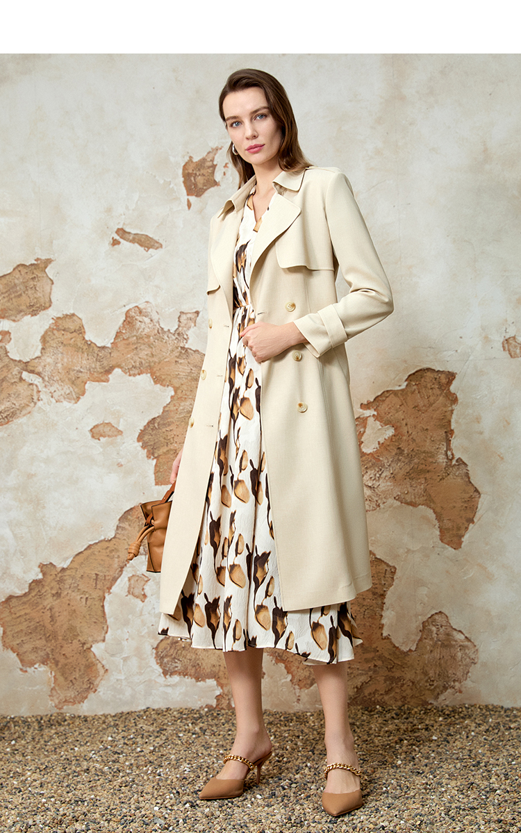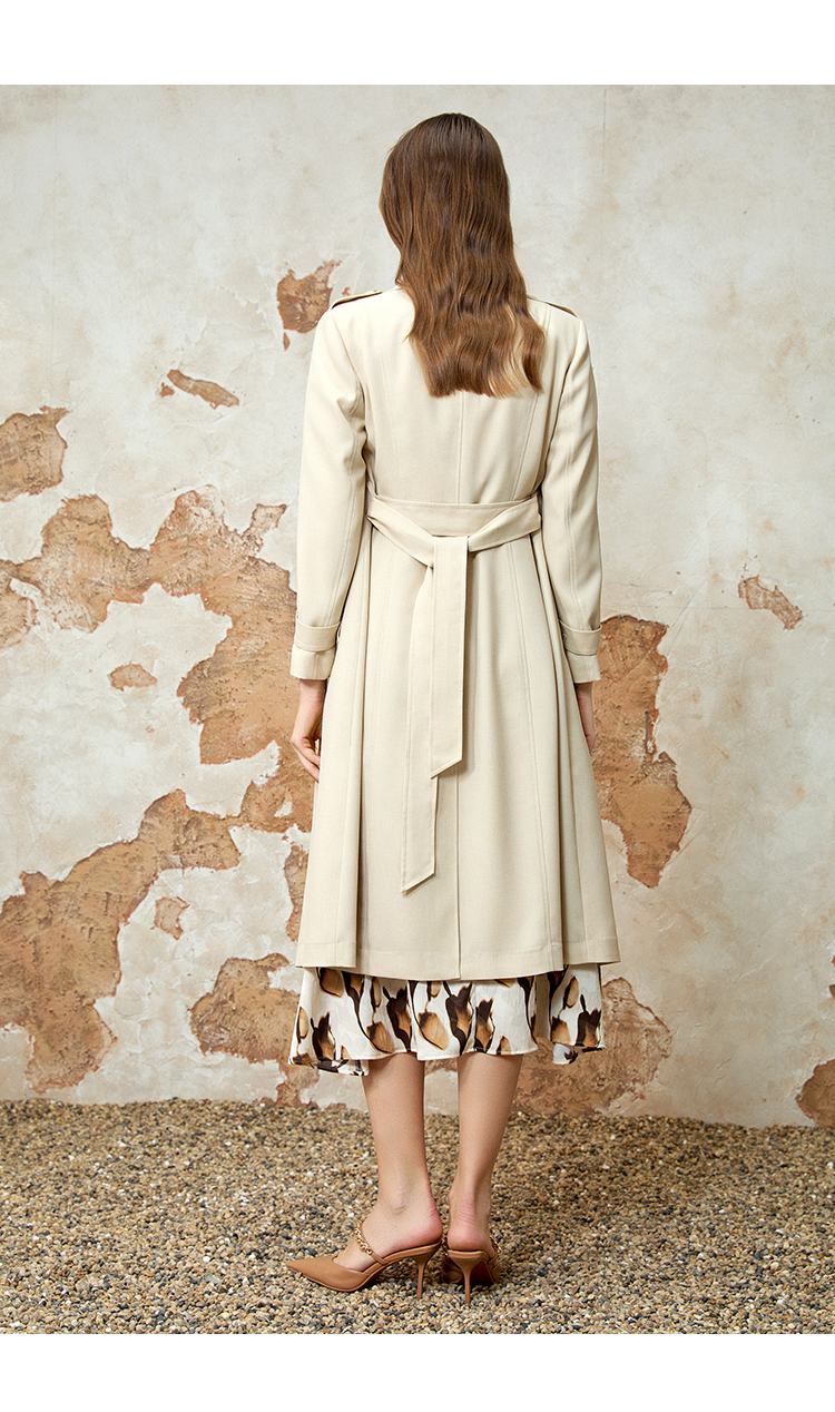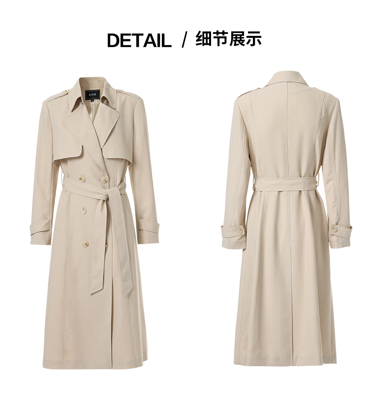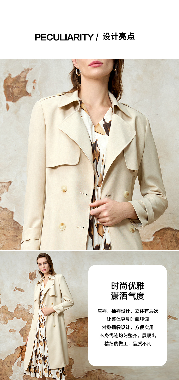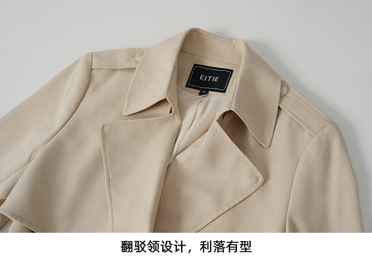 EITIE爱特爱春季新款经典翻领双排扣风衣外套女8104806