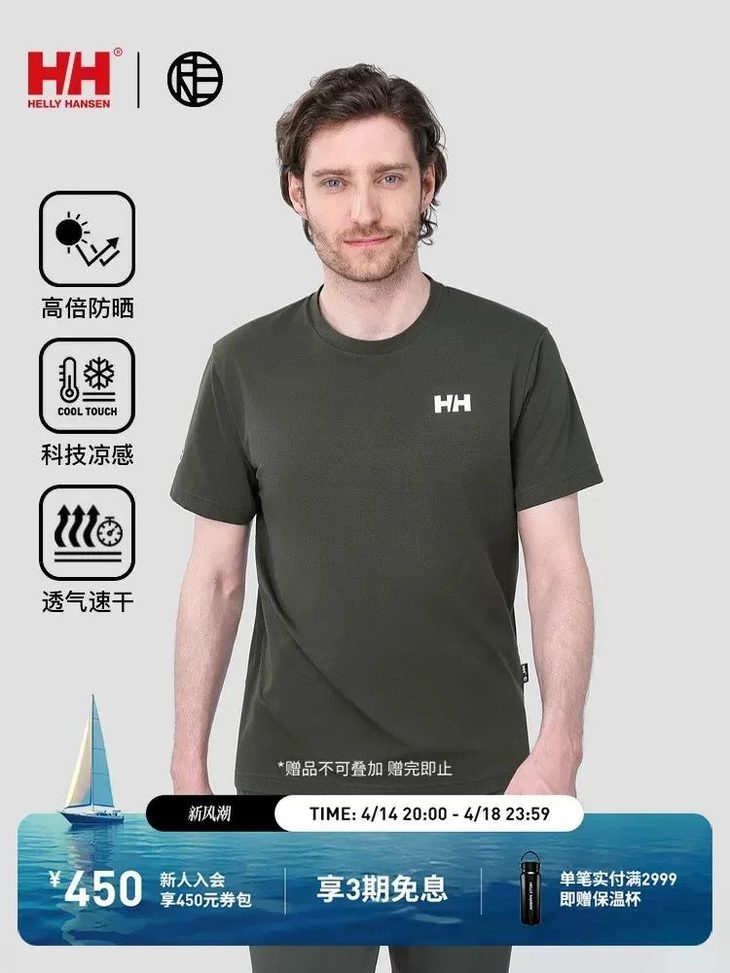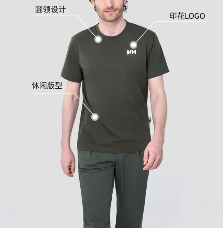 王一博同款HH海丽汉森26夏情侣纯棉速干抗菌LOGO山脉图案短袖T恤