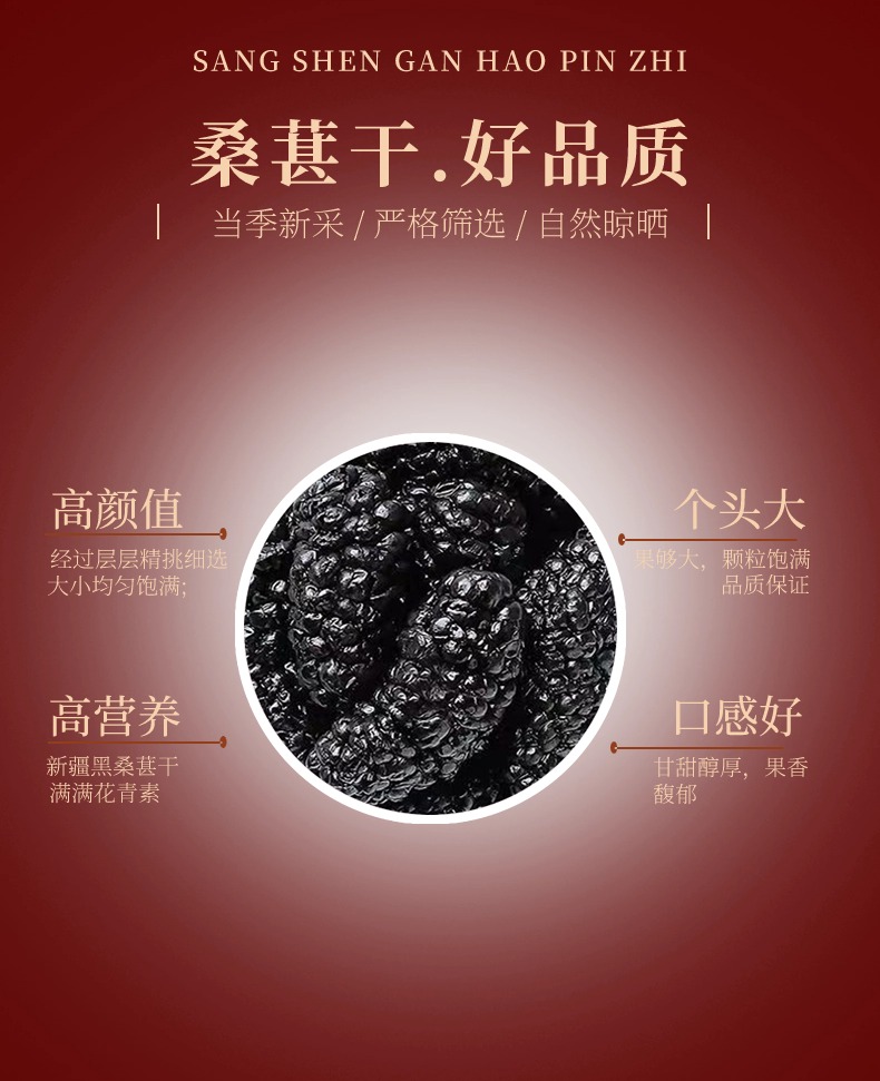 新疆黑桑葚干 粒大无沙 颗颗饱满 新疆优质原产地 无污染土壤 当季新采