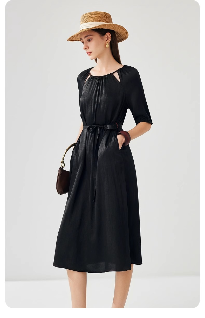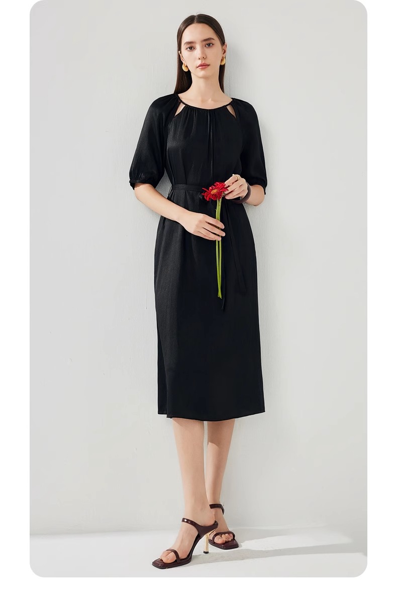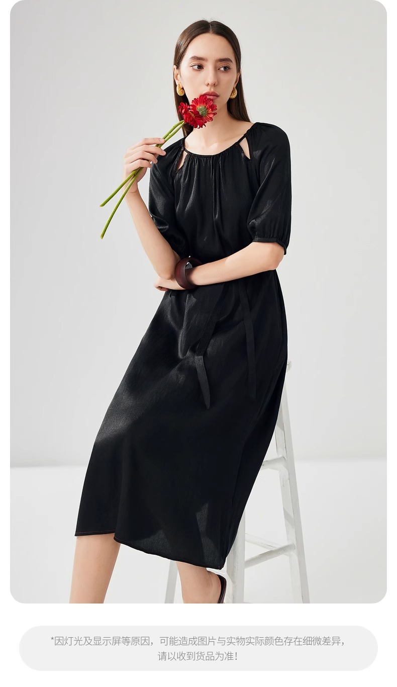 丁摩 真丝香云纱冠乐绉连衣裙XZ33889