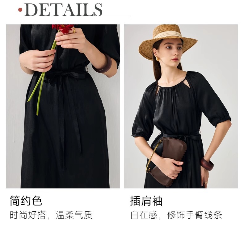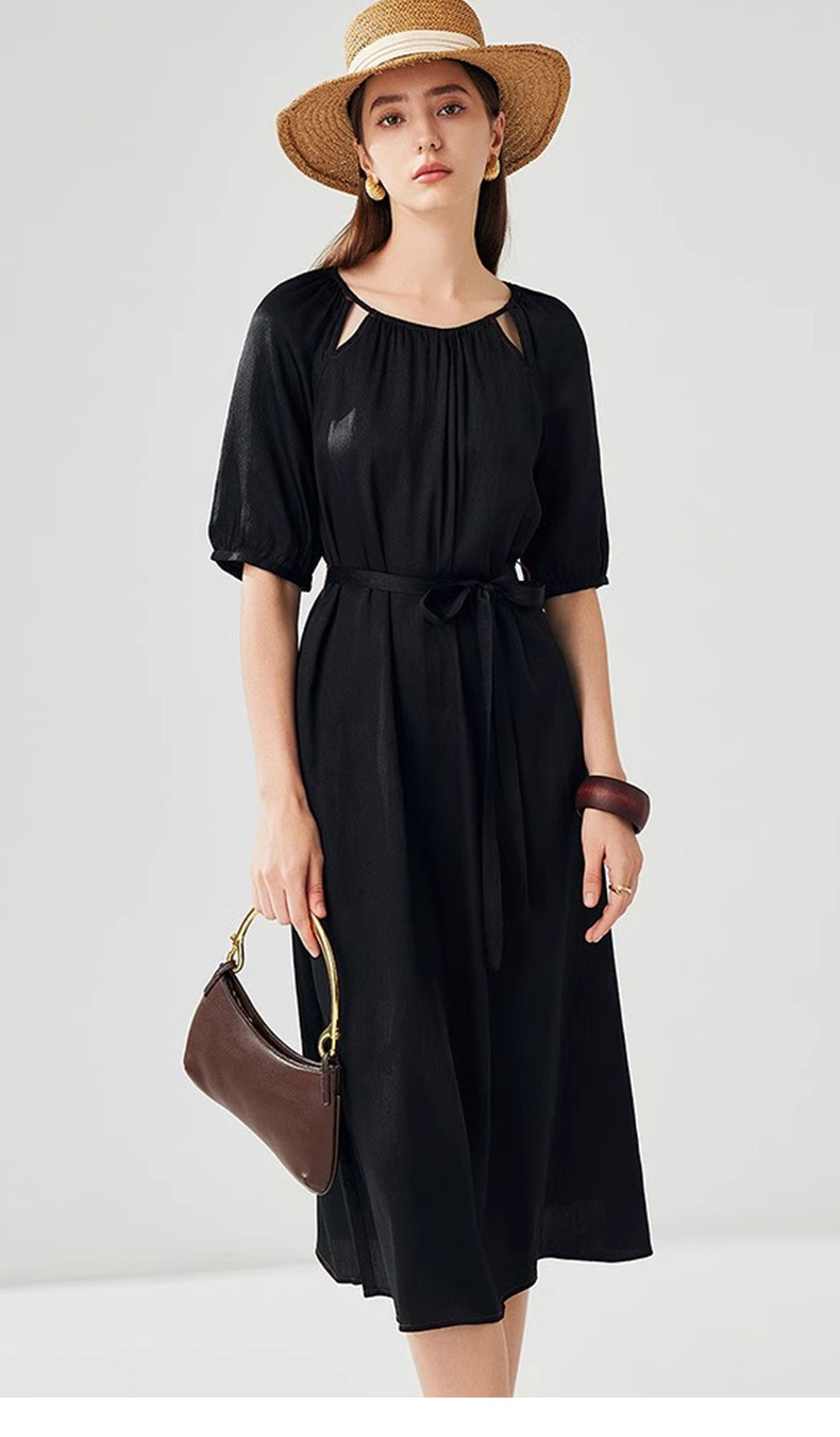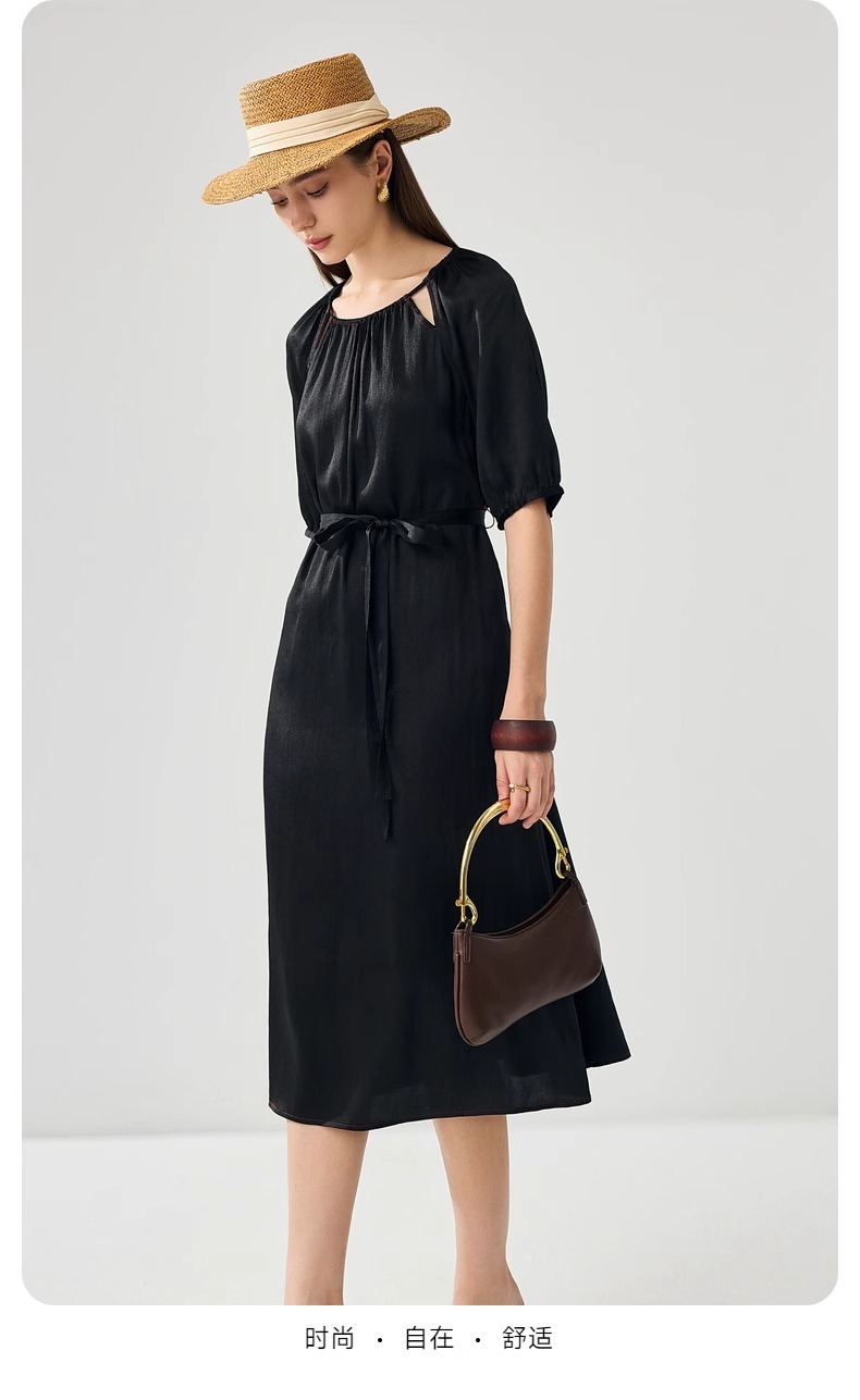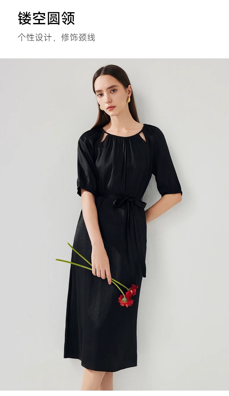 丁摩 真丝香云纱冠乐绉连衣裙XZ33889