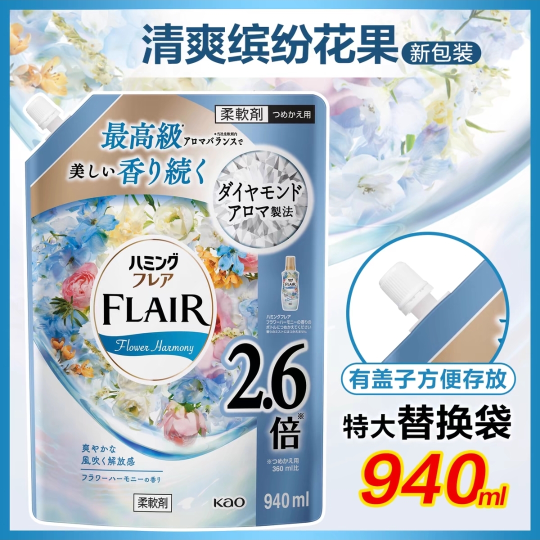 日本花王牌柔顺剂940ml清爽鲜花谐美香型淡蓝色)