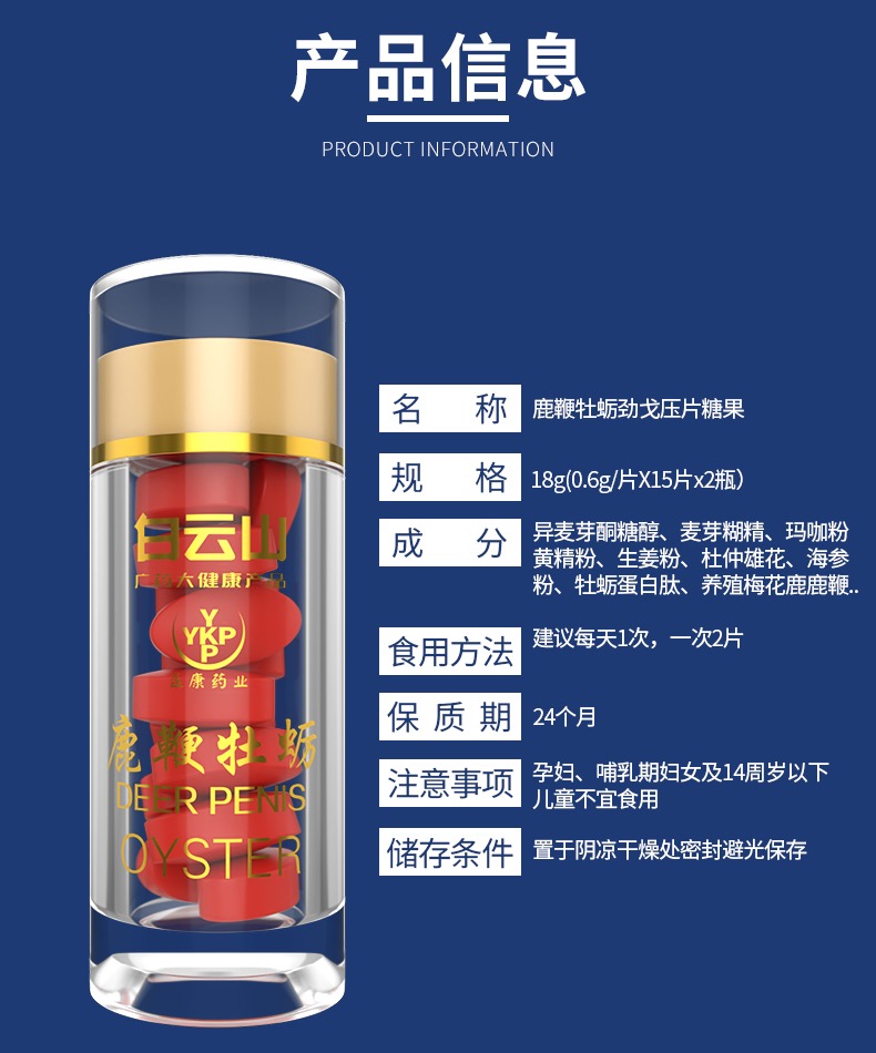 白云山牡蛎片男用品肾持久男性玛咖人参保健鹿鞭肽锌片补品CR