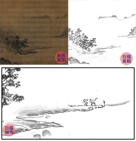 宋画山水白描底稿-斗方小品册页-朴庵《烟江欲雨图》-多种白描尺寸可选-GS12