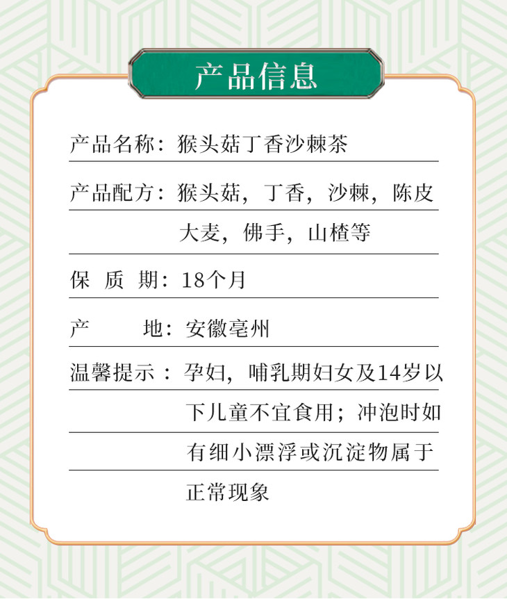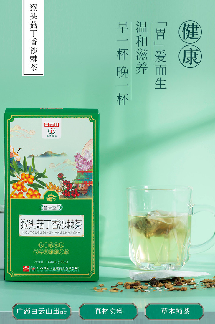 【买2送1买3送2买5送4】白云山猴头菇丁香沙棘茶养胃暖胃口感柔和爽口药食同源真材实料养生茶