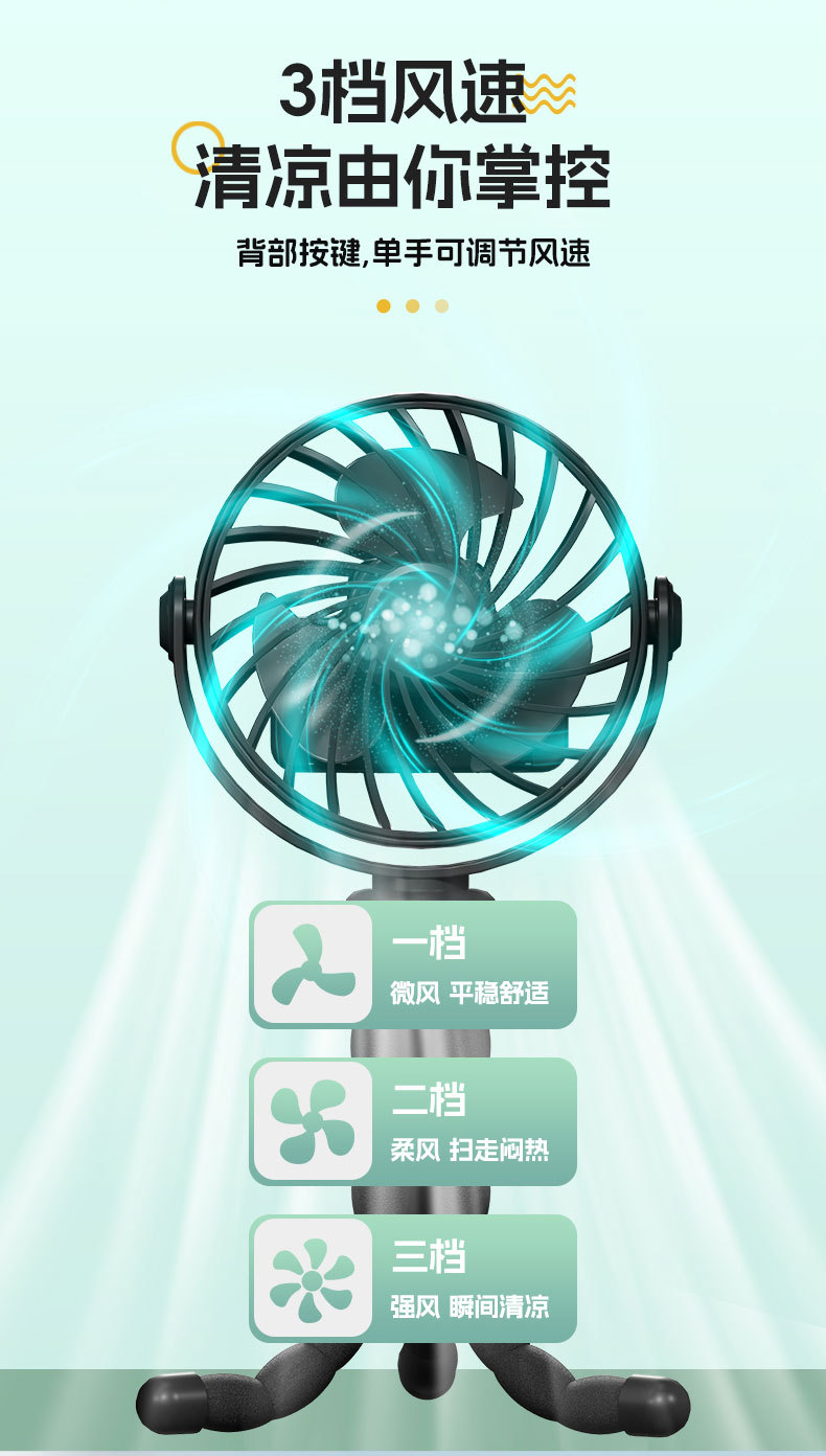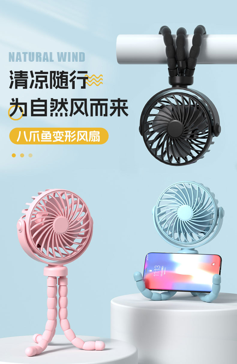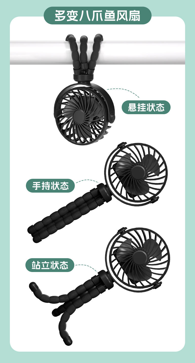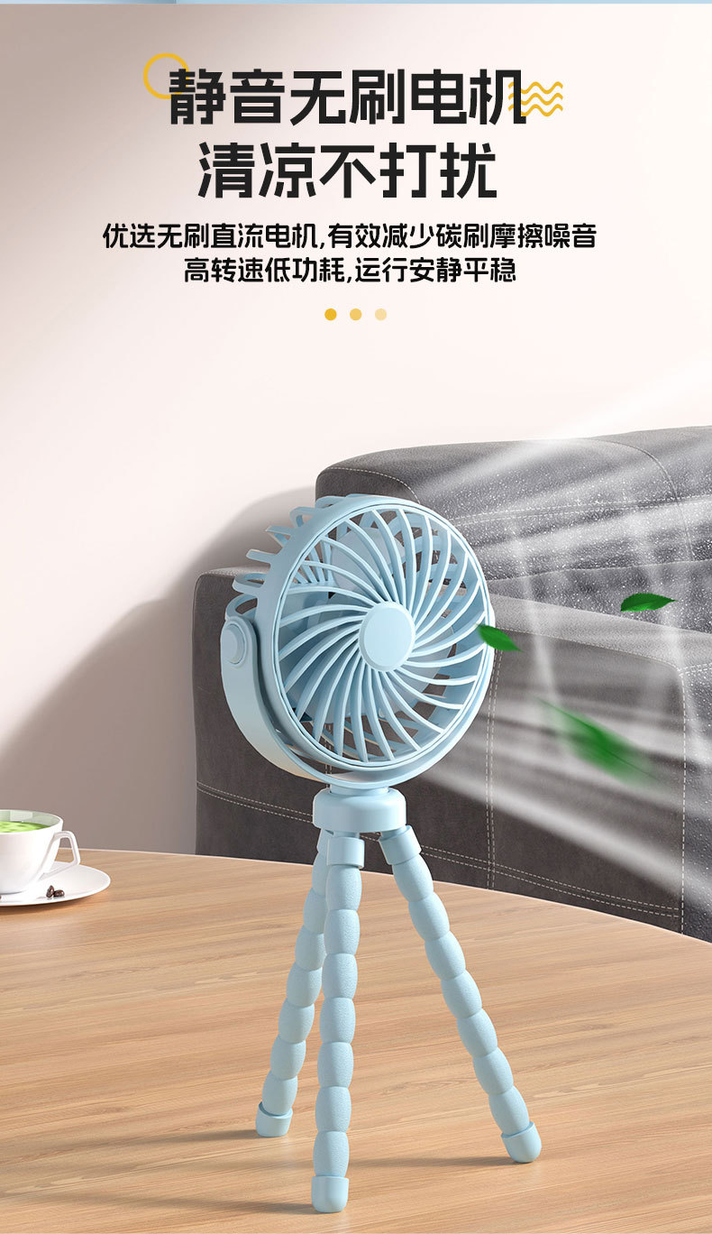 【柔和自然风,久吹不头疼!】婴儿车小风扇小型八爪鱼宝宝手推车电充迷你遛娃随时便携-lm!