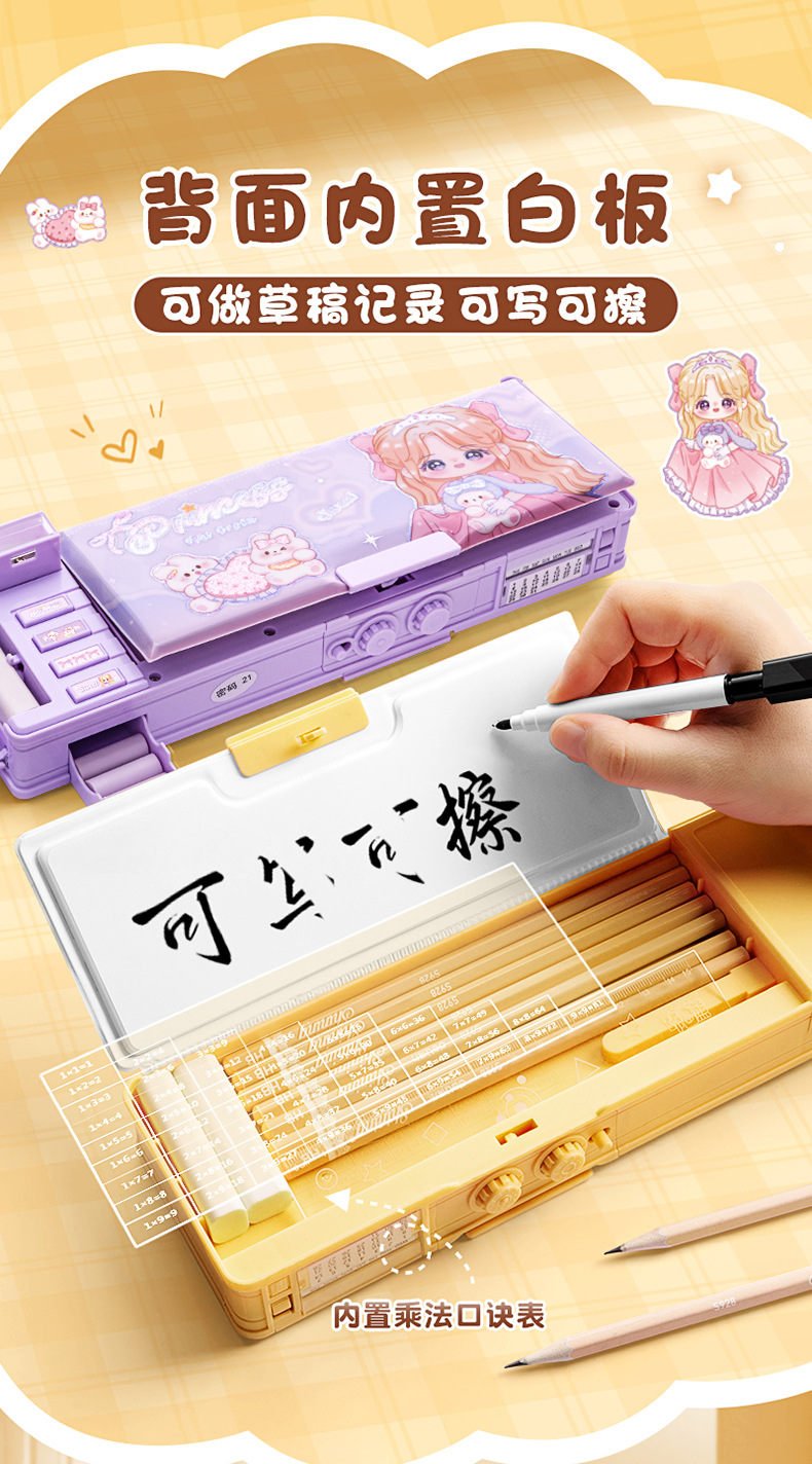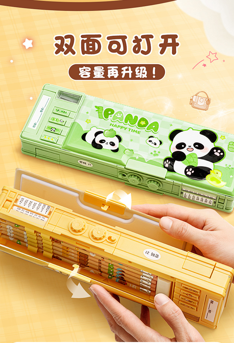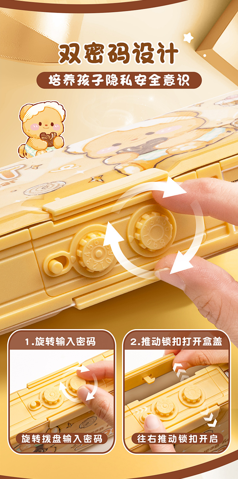 【升级密码锁❗️背面内置白板】咔巴熊密码文具盒女孩款多功能铅笔盒儿童机关笔盒女生小学生笔袋。jc