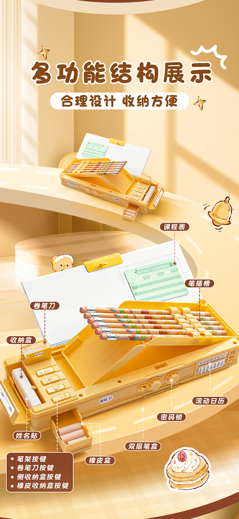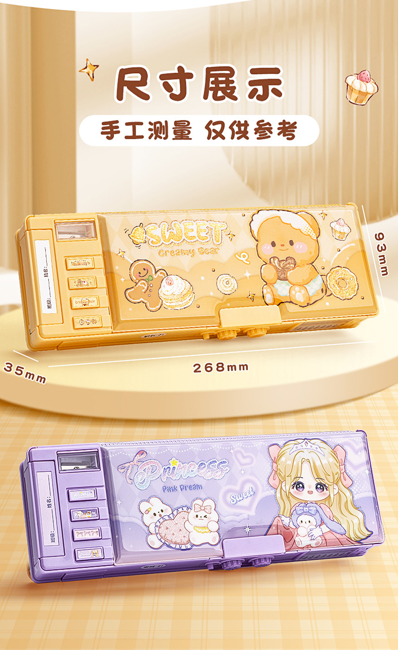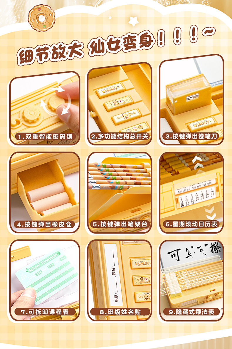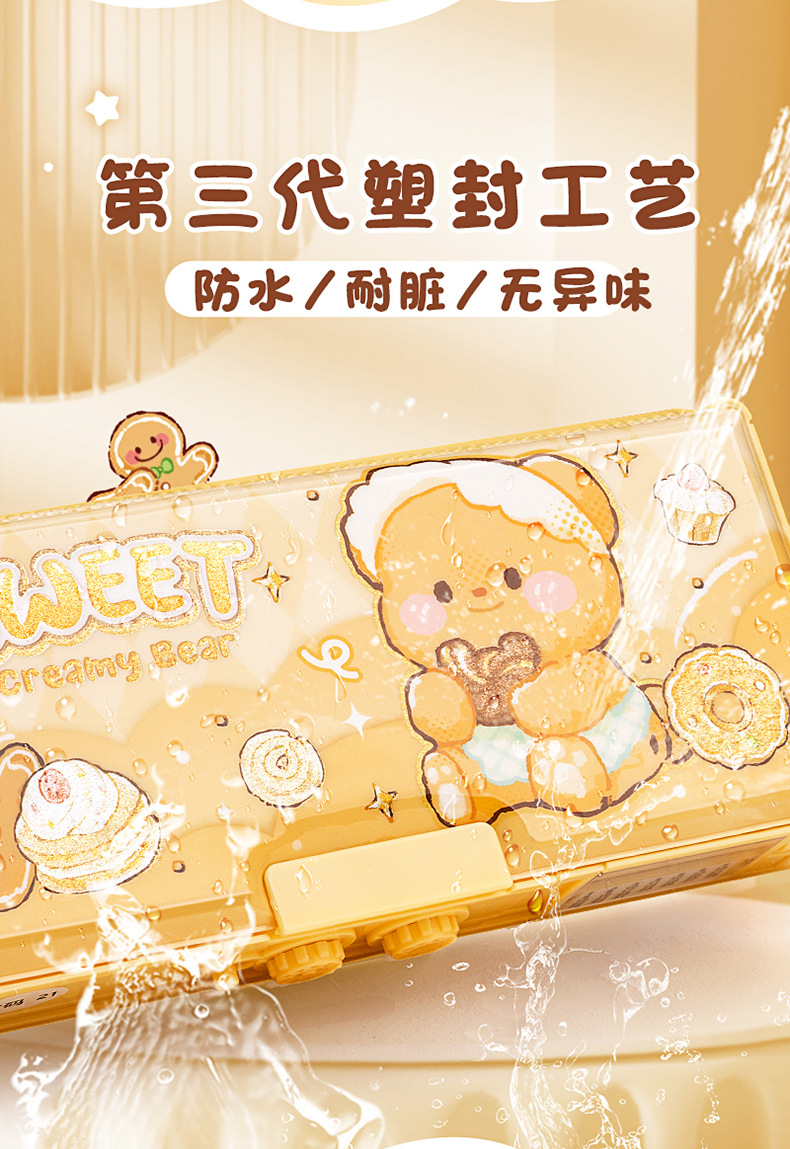 【升级密码锁❗️背面内置白板】咔巴熊密码文具盒女孩款多功能铅笔盒儿童机关笔盒女生小学生笔袋。jc