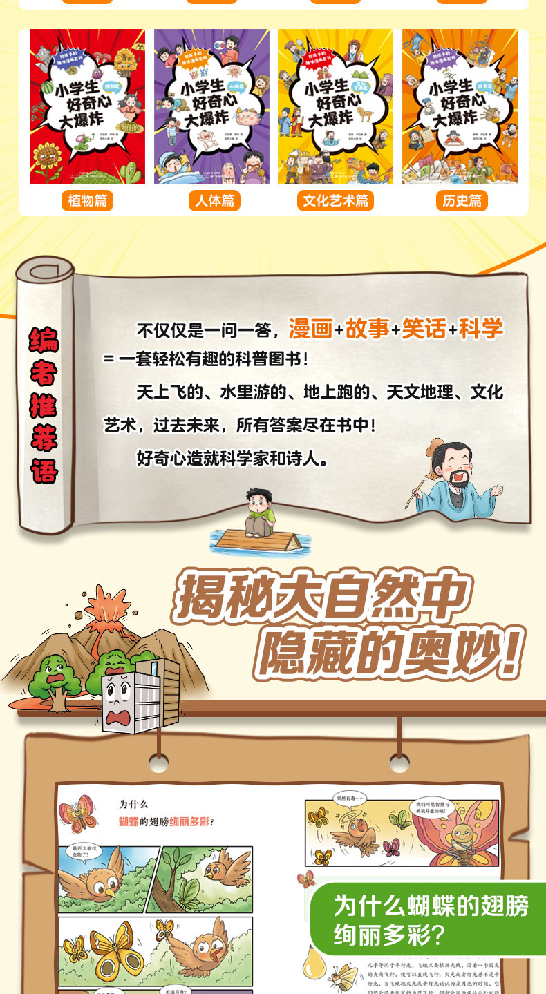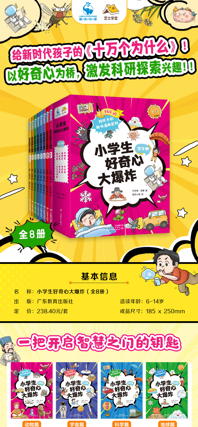 《小学生好奇心大爆炸》(套装共8册) 动物篇/宇宙篇/科学篇/地球篇/植物篇/人体篇/文化艺术篇/历史篇