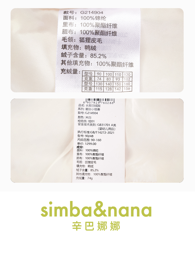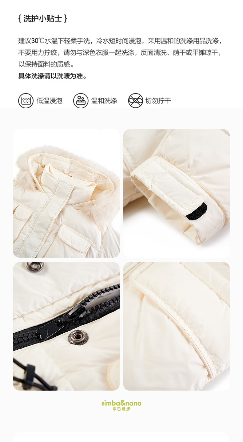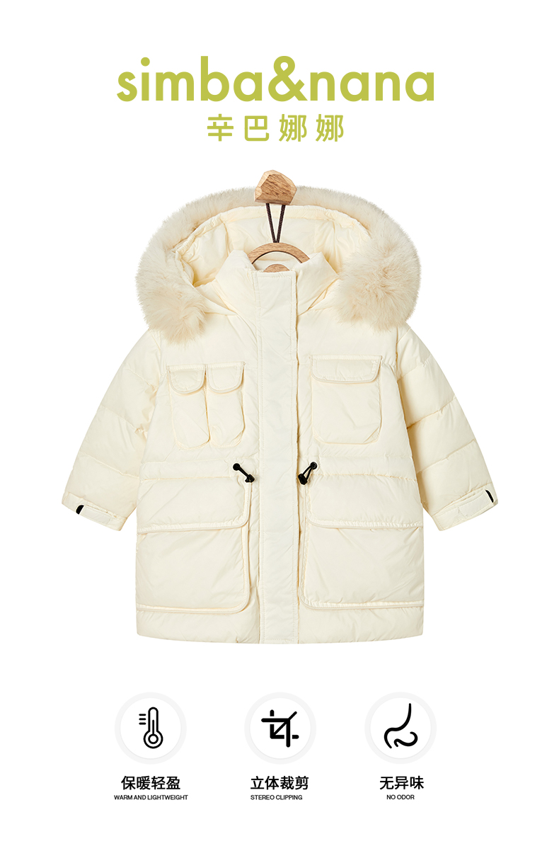 【辛巴娜娜】simbanana【大童】儿童羽绒服女童中长款宝宝洋气冬外套加厚新款