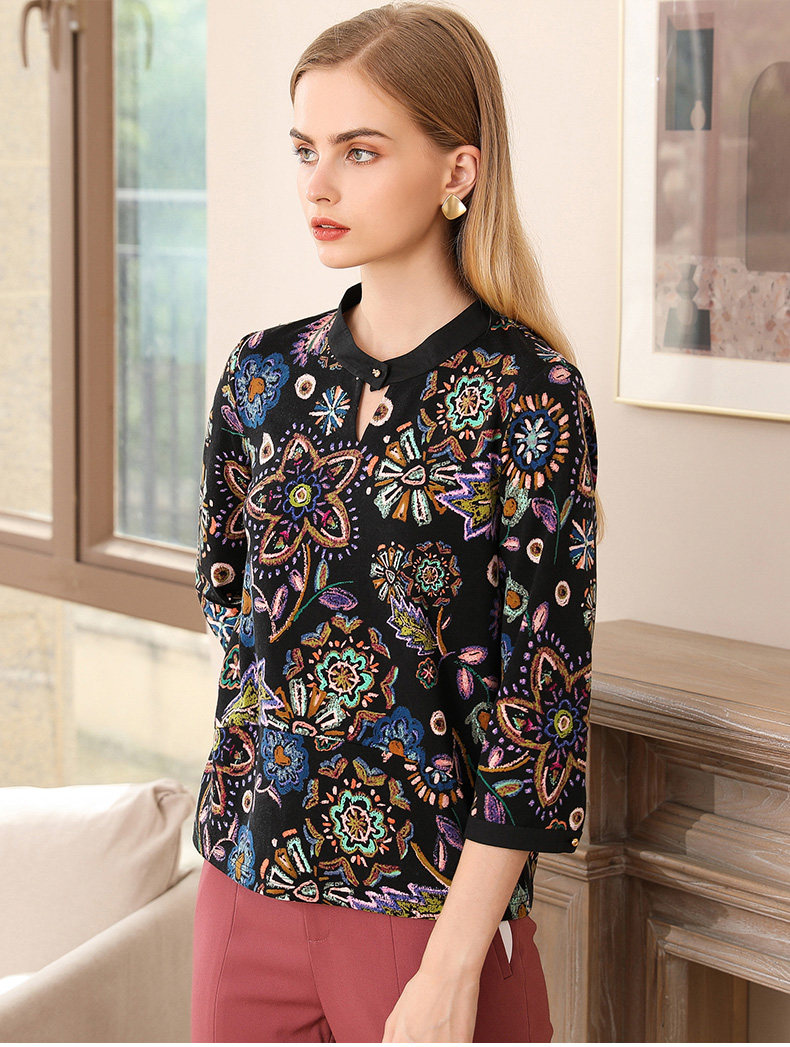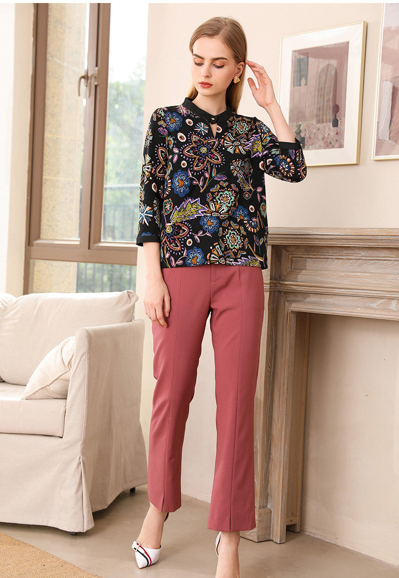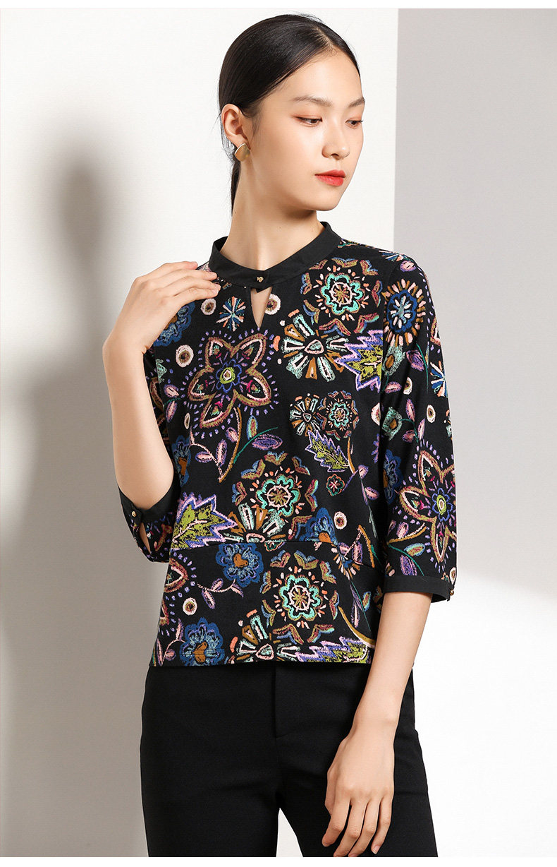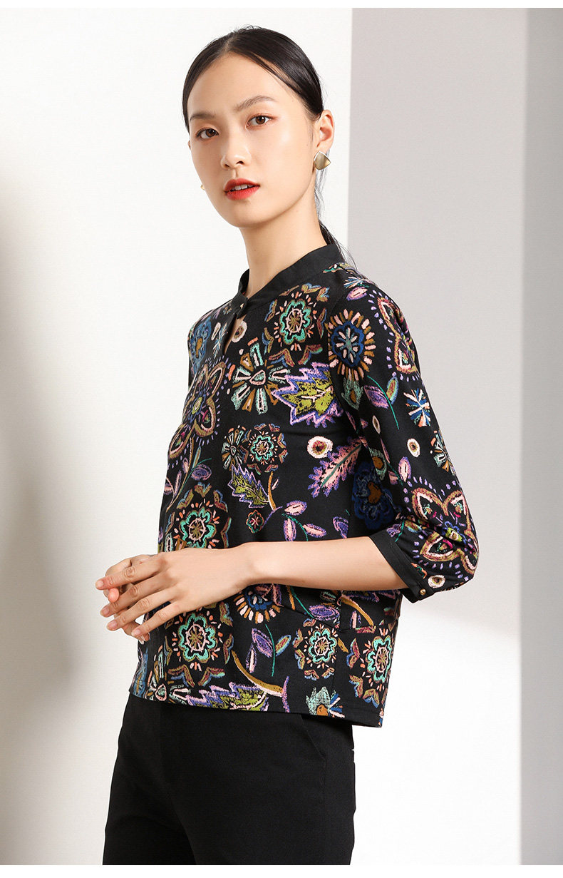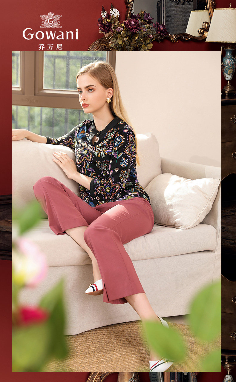 乔万尼衬衫春秋季潮复古印花宽松气质长袖上衣EN3C363