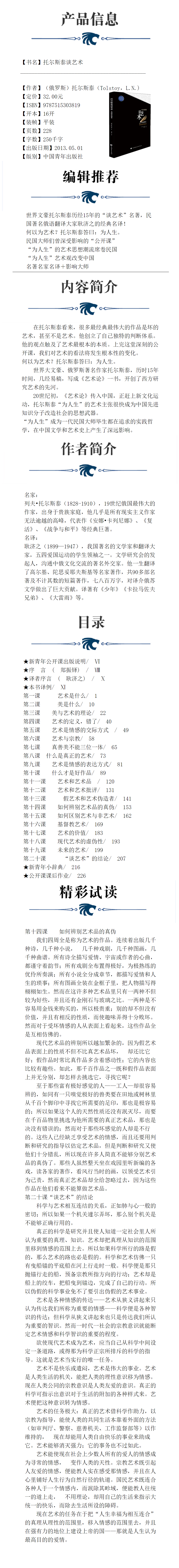 托尔斯泰谈艺术 (俄罗斯)托尔斯泰(Tolstoy,L.N.)中国青年出版社