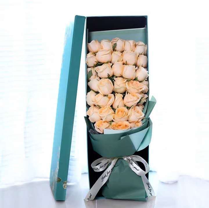 花材: 33支香槟玫瑰,栀子叶搭配,60cm礼盒