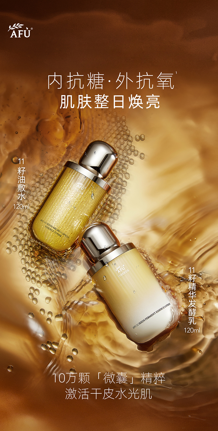 【AFU】阿芙11籽微凝珠紧致焕亮精华水120ml+11籽发酵精华乳120g赠水30ml