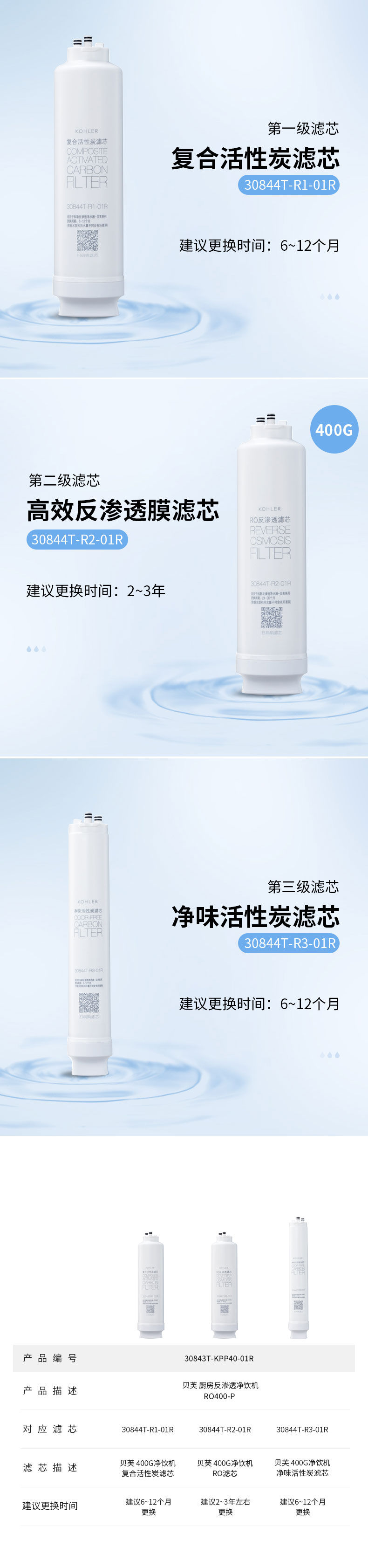 科勒(KOHLER)贝芙400G反渗透净水器KPP40专用CF滤芯30844T-R1-01R