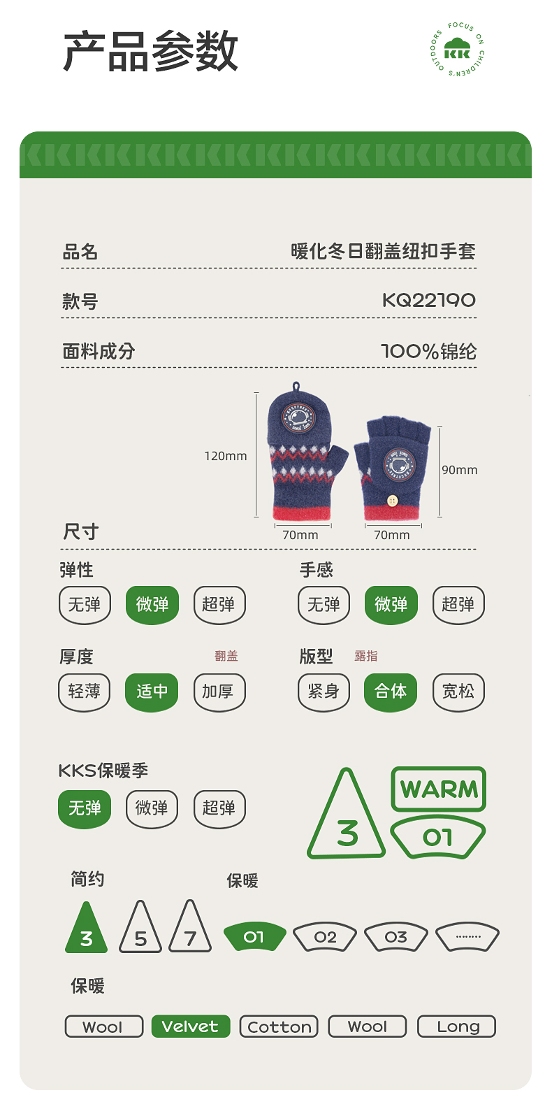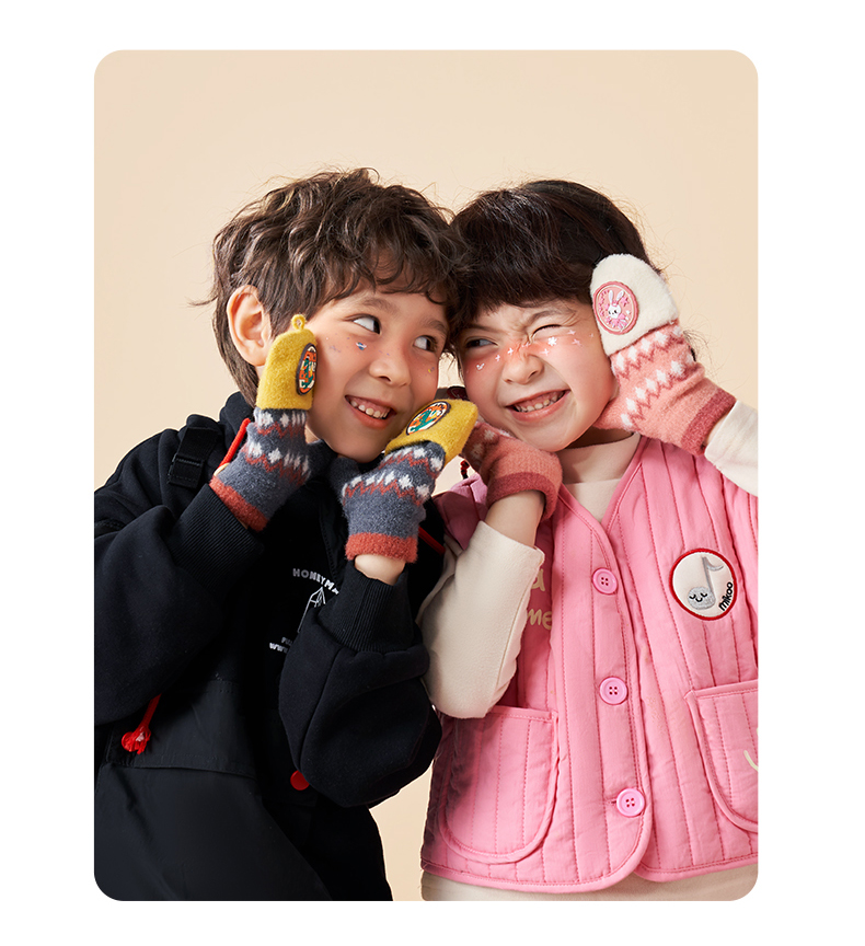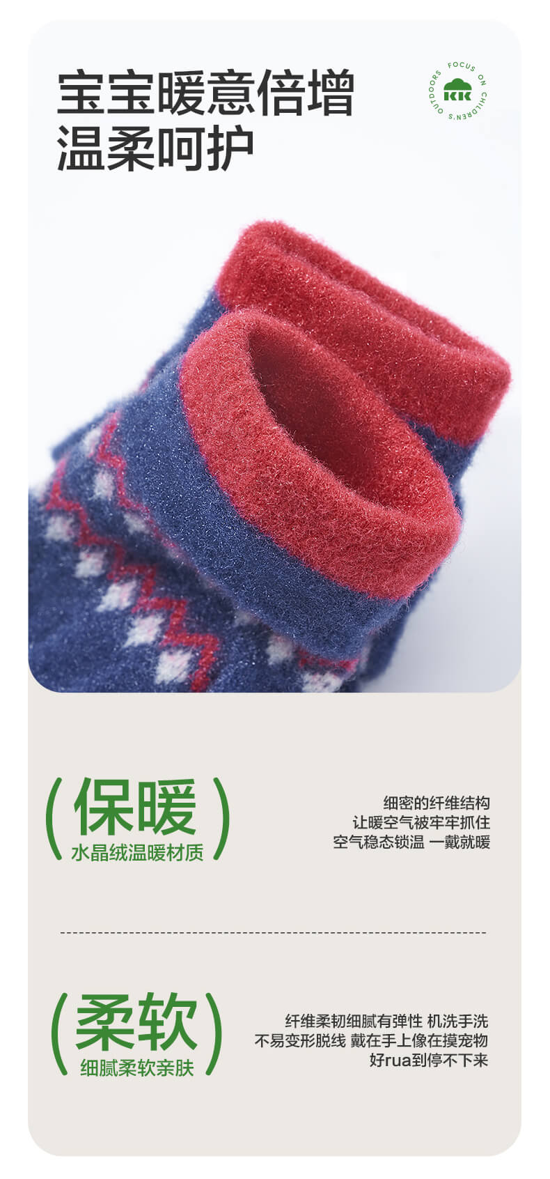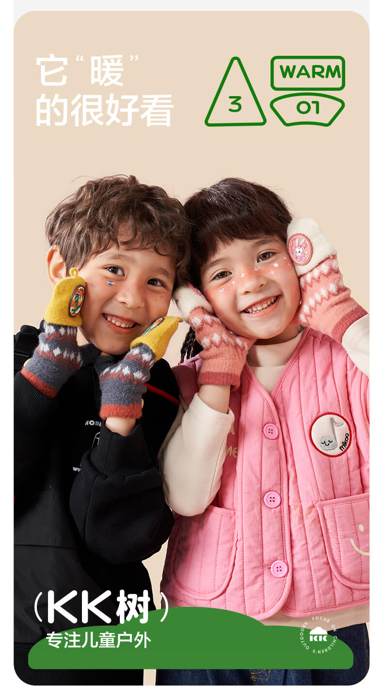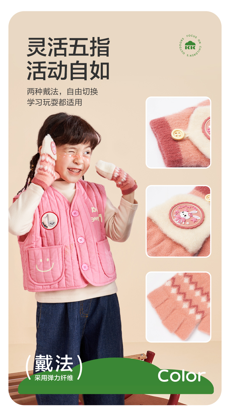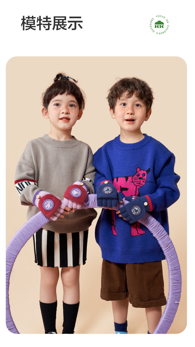 KK树儿童手套冬男童女童五指保暖翻盖宝宝春秋小孩专用小学生针织暖化冬日翻盖纽扣手套