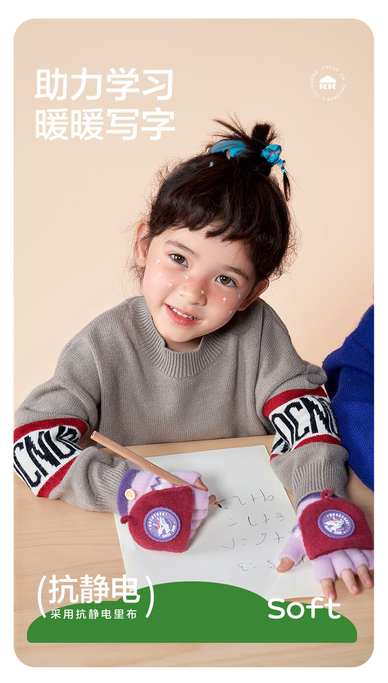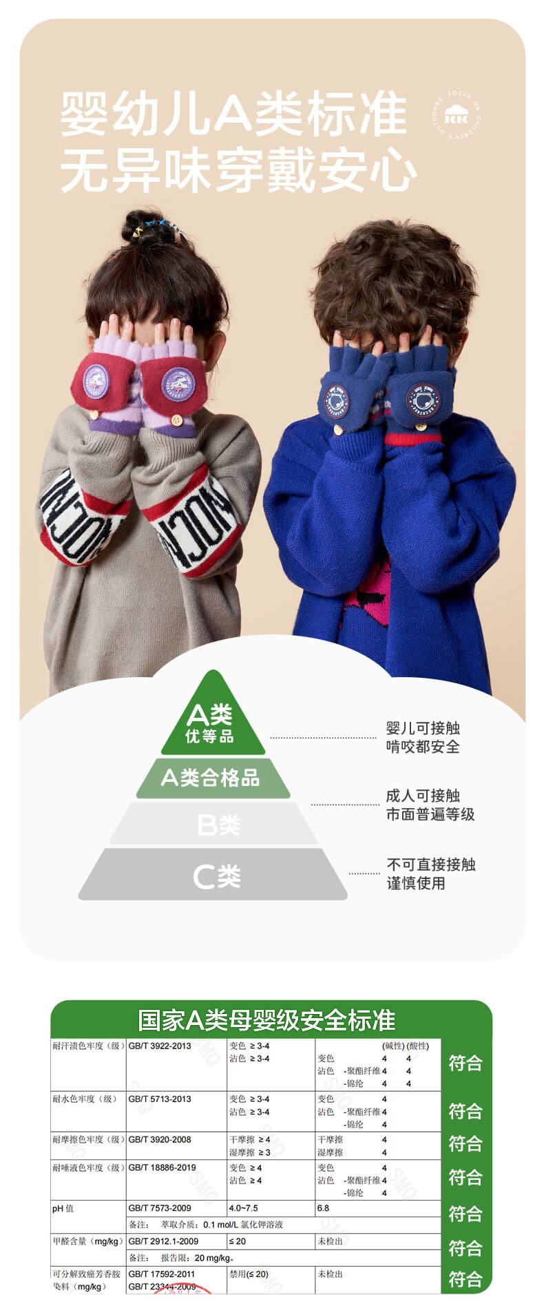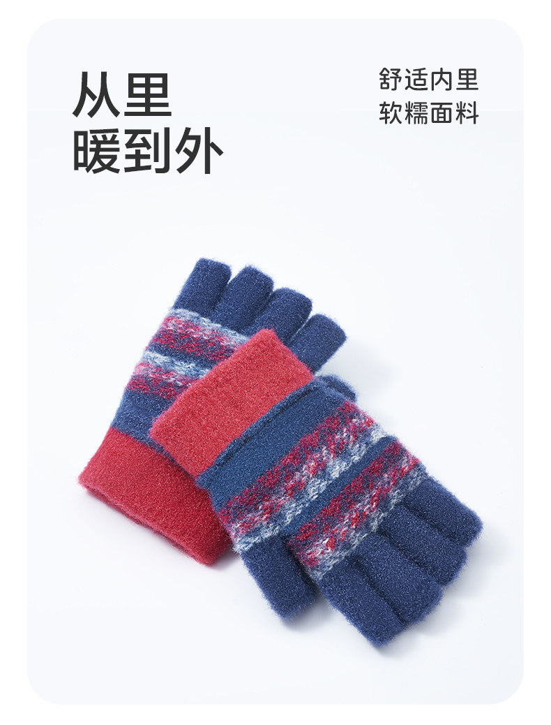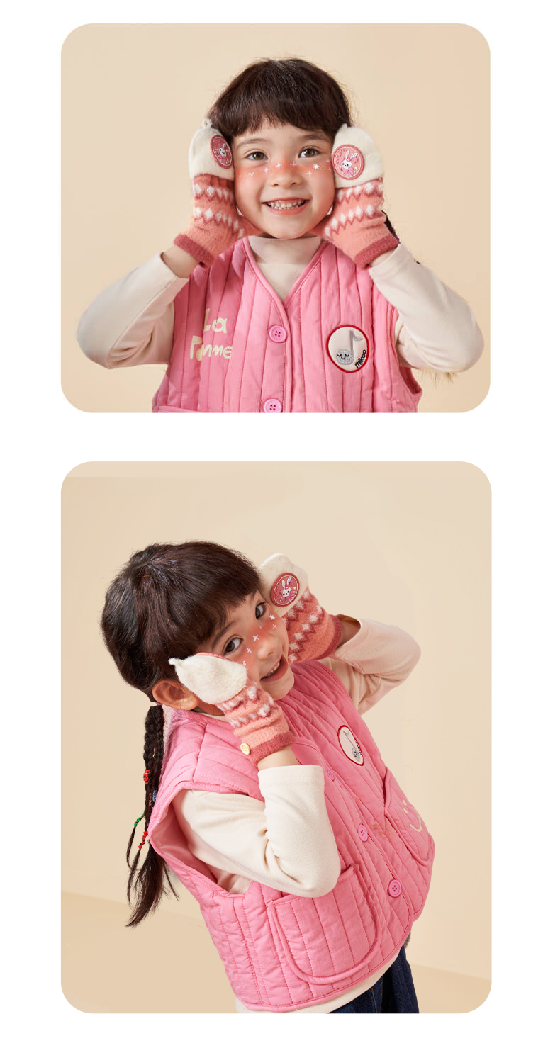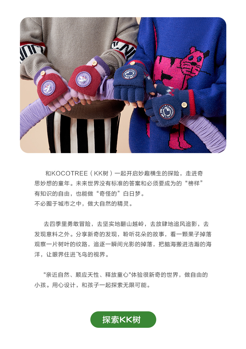 KK树儿童手套冬男童女童五指保暖翻盖宝宝春秋小孩专用小学生针织暖化冬日翻盖纽扣手套