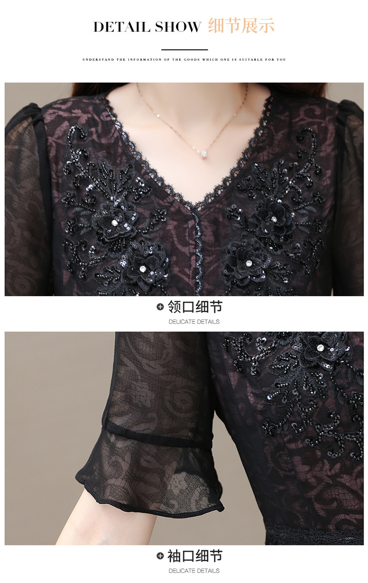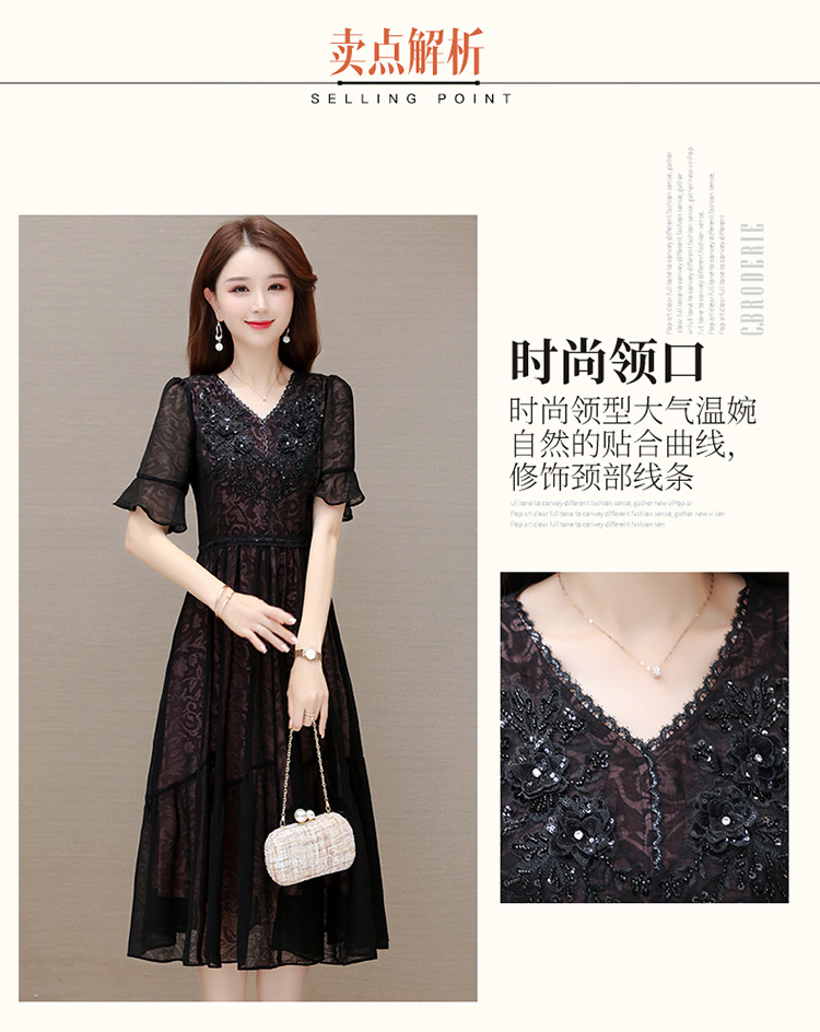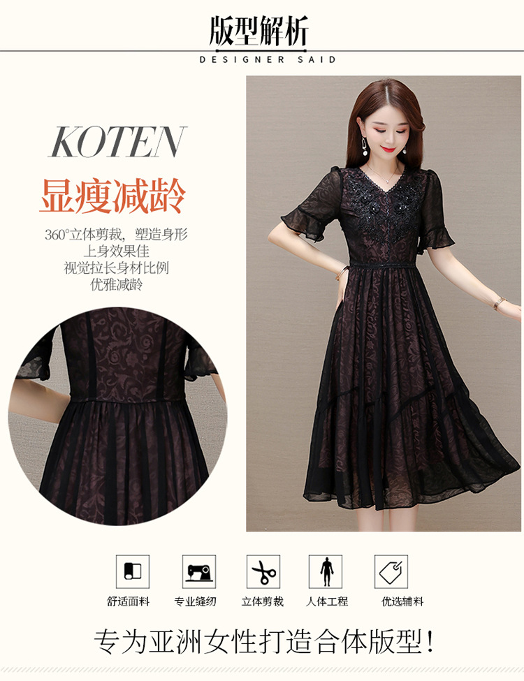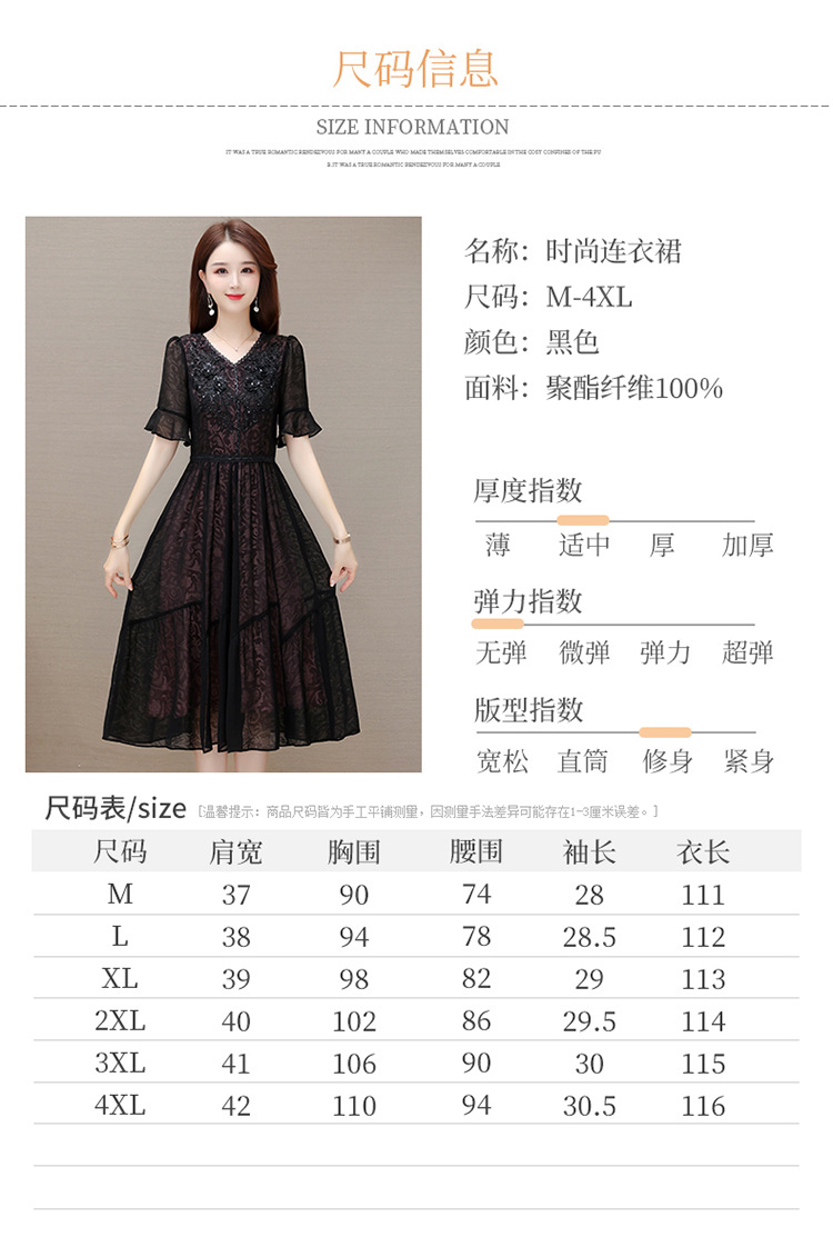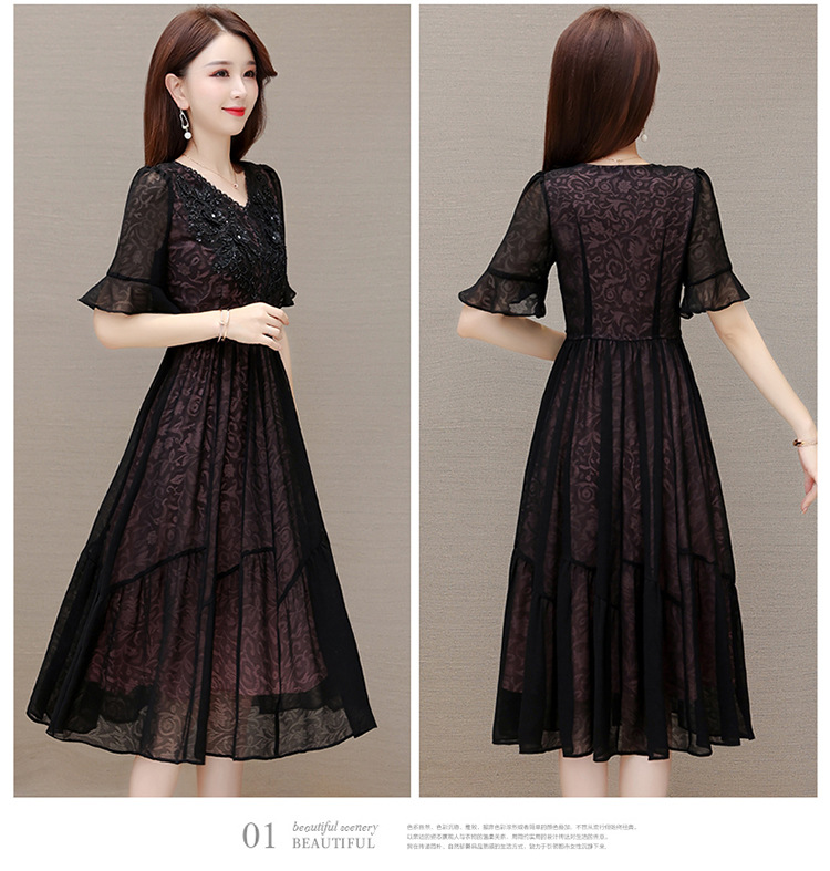 时尚妈妈装黑色高腰提花大摆A字裙喇叭袖连衣裙QYM-HSY-E23A009-Y