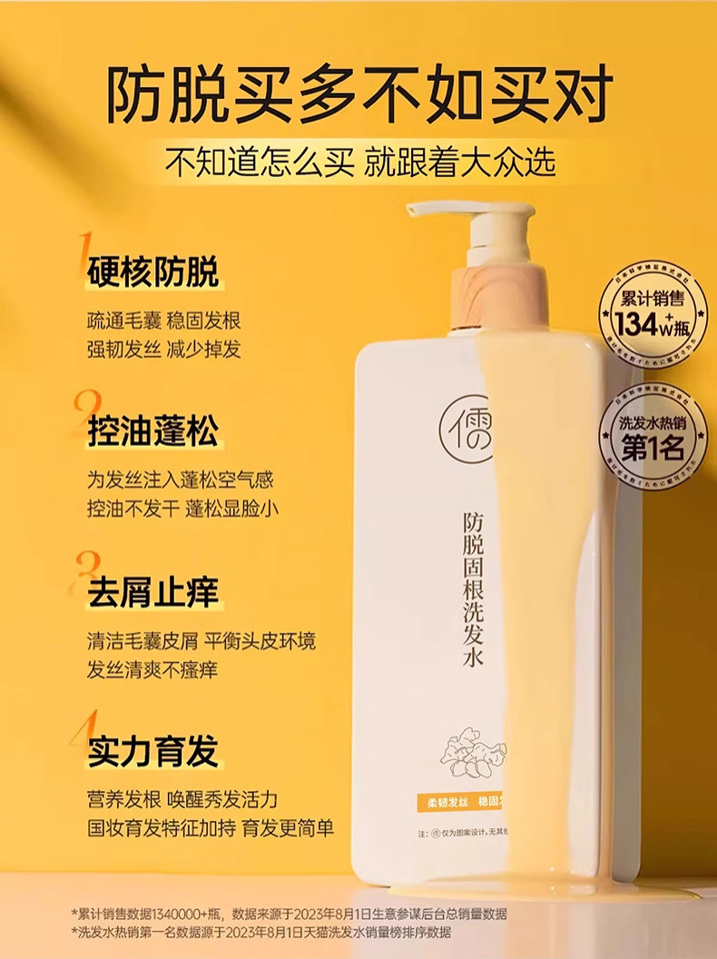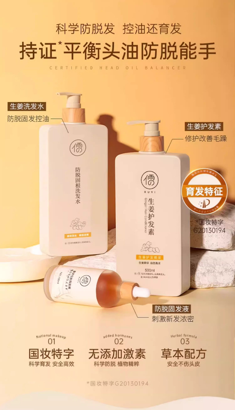 春节不打烊【去屑止痒防脱育发❗️控油蓬松强韧发根】儒意生姜洗发水防脱育发洗发水育发液洗发膏。jd