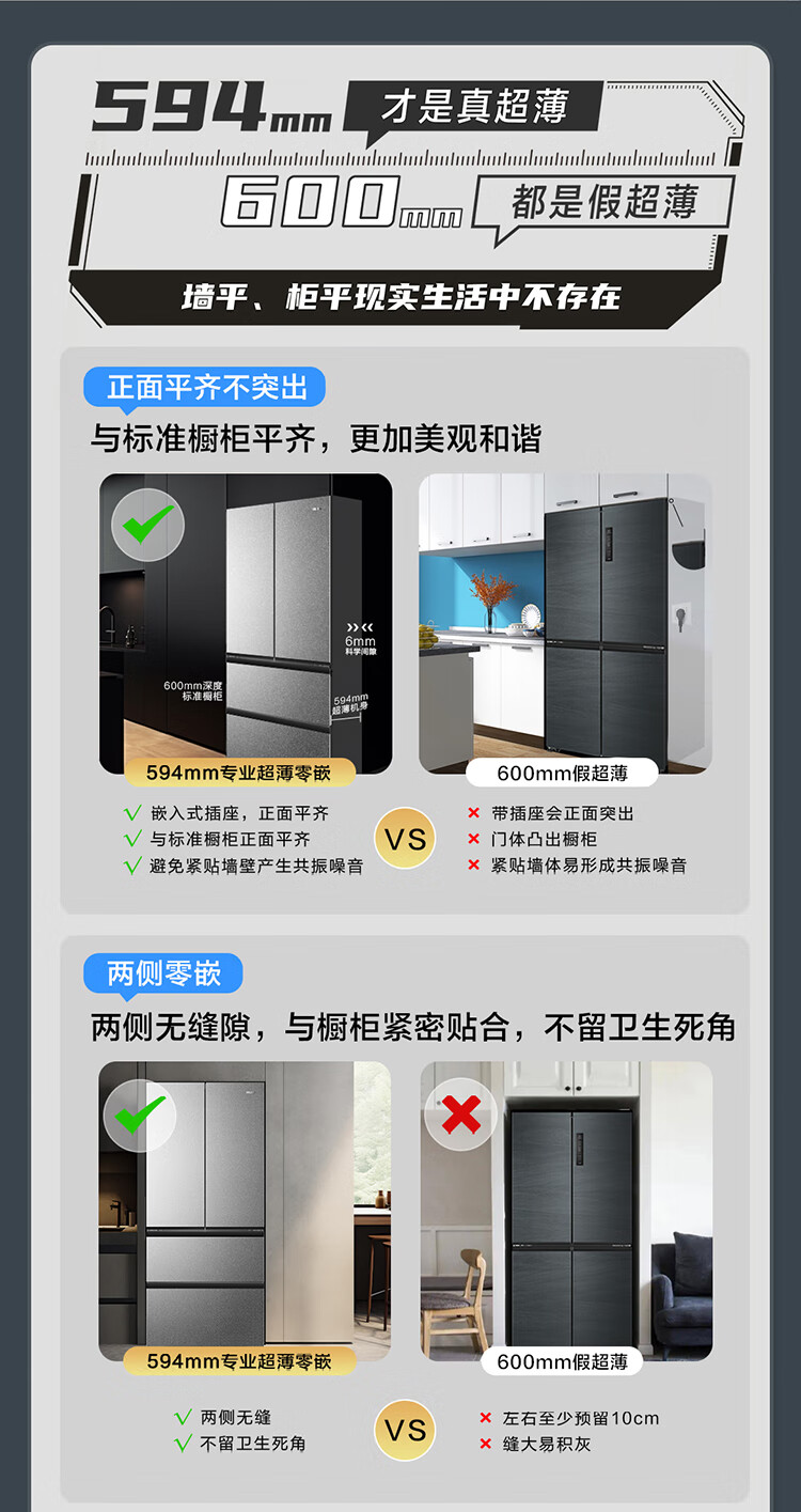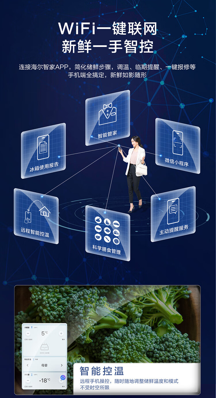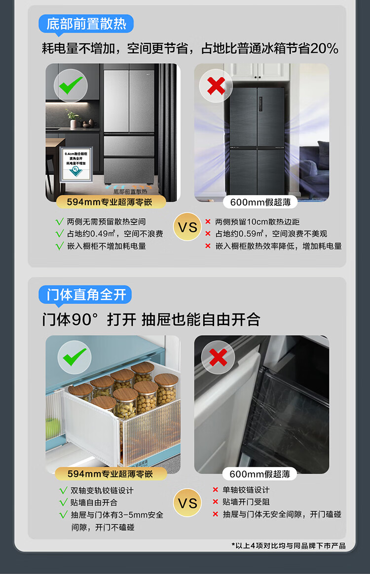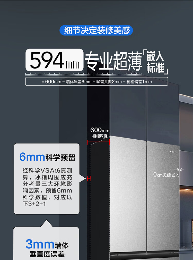 海尔冰箱486升594mm超薄嵌入式法式四开门多门一级能效风冷无霜全空间保鲜大容量底部散热家用家电冰箱 486L+EPP超净系统+阻氧干湿分储+联网智控