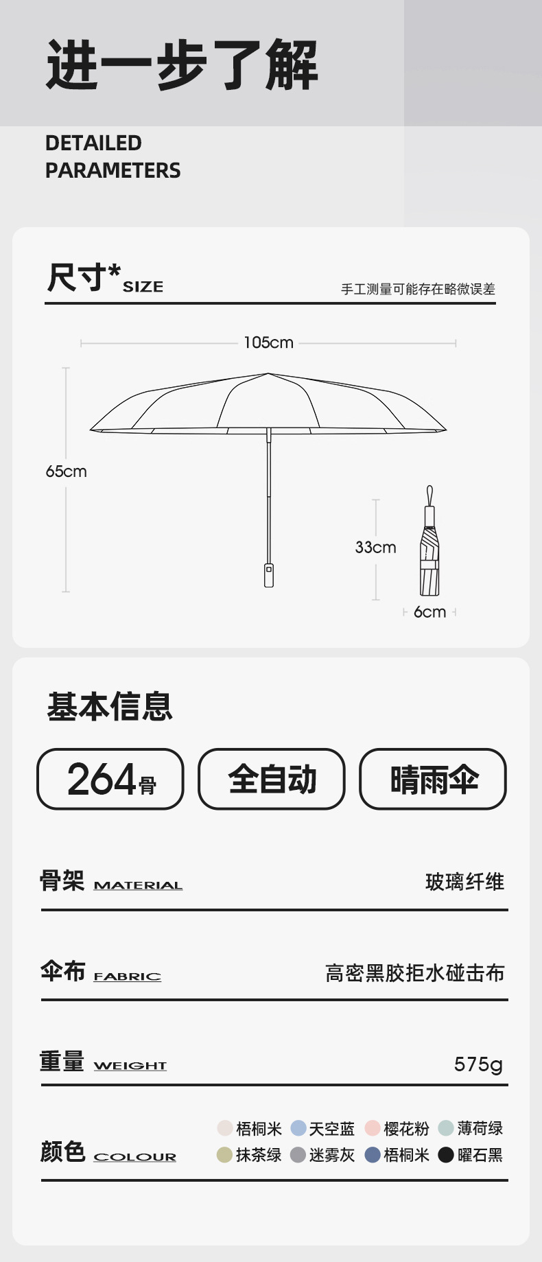 【全自动晴雨两用伞】抗暴风雨大号伞 264根骨加固加强伞架经久耐用