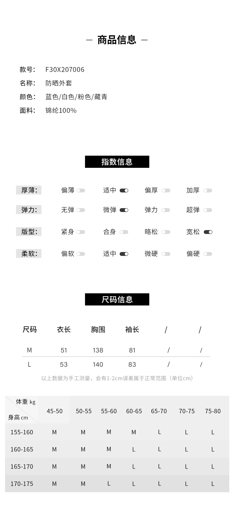 【轻盈透气】阿菁娜防紫外线宽松薄款户外凉感夏季外套F30X207006