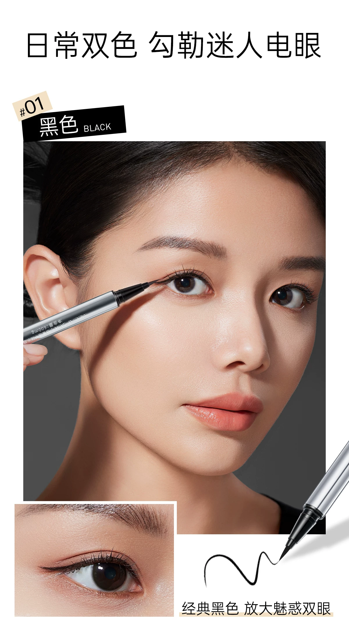 蜜卡佛小银管速干防水眼线液笔 1#黑色 2#棕色