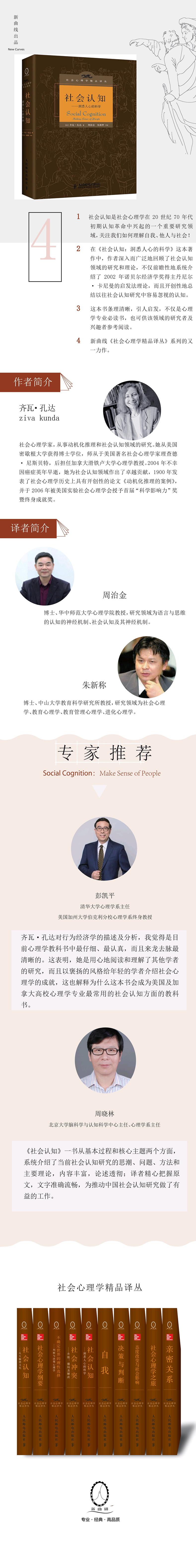 齐瓦·孔达(Ziva Kunda, 1955-2004)社会心理学家,从事动机化推理和社会认知领域的研究。她从美国密歇根大学获得博士学位,师从于美国有名社会心理学家理查德?尼斯贝特,后担任加拿大滑铁卢大学心理学教授。2004年不幸因癌症英年早逝。她为社会认知领域作出了很好贡献,1990年发表了社会心理学历史上具有开创性的论文《动机化推理的案例》,并于2006年被美国实验社会心理学会授予首届“科学影响力”奖暨终身成就奖。译者简介周治金,博士,华中师范大学心理学院教授,研究领域为语言与思维的认知的神经机制、社会认知及其神经机制。朱新秤,博士,中山大学......
