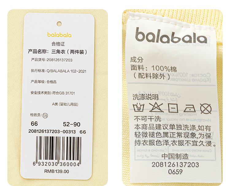 【balaOne】巴拉巴拉童装宝宝内着三角衣2025新款春装两件装甜美