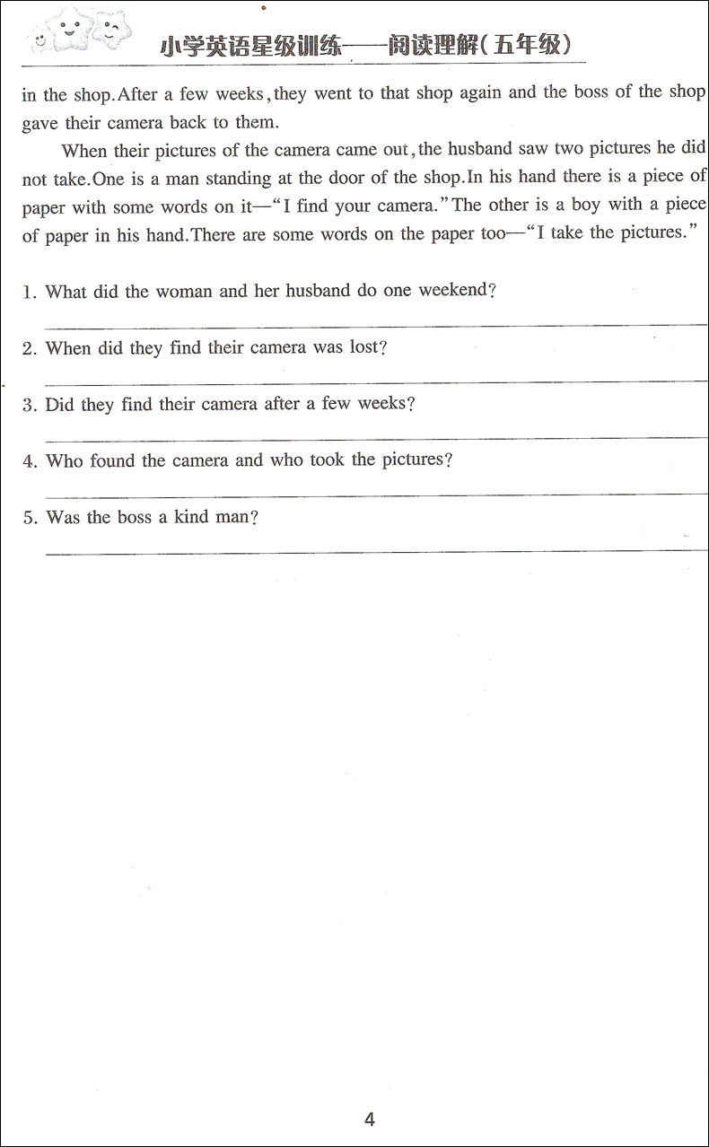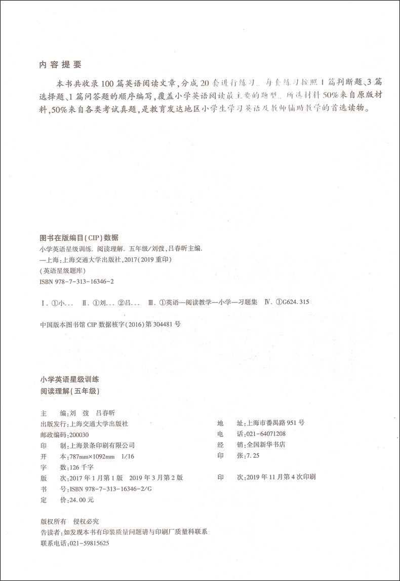 小学英语星级训练阅读理解 5年级/五年级 英语星级题库丛书 小学英语阅读教学习题集 上海交通大学出版社
