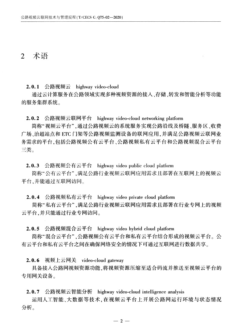 公路视频云联网技术与管理规程(T/CECS G:Q75-02—2020)