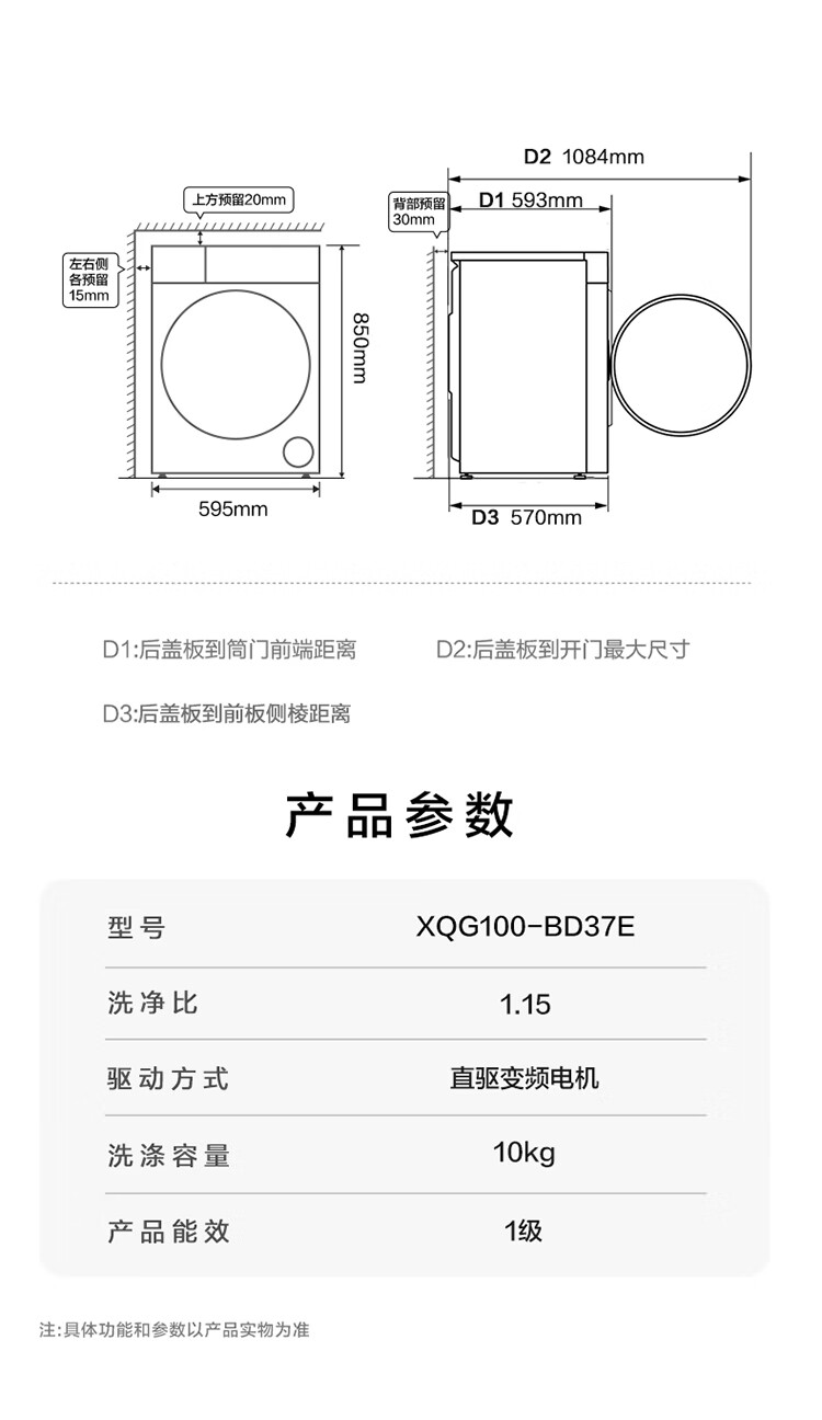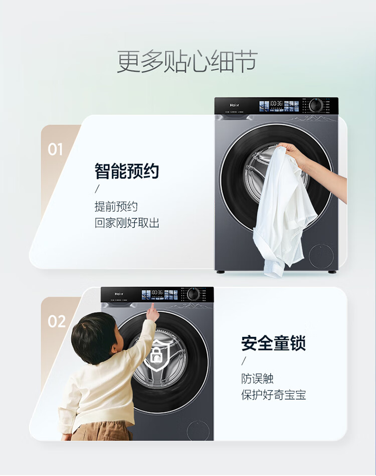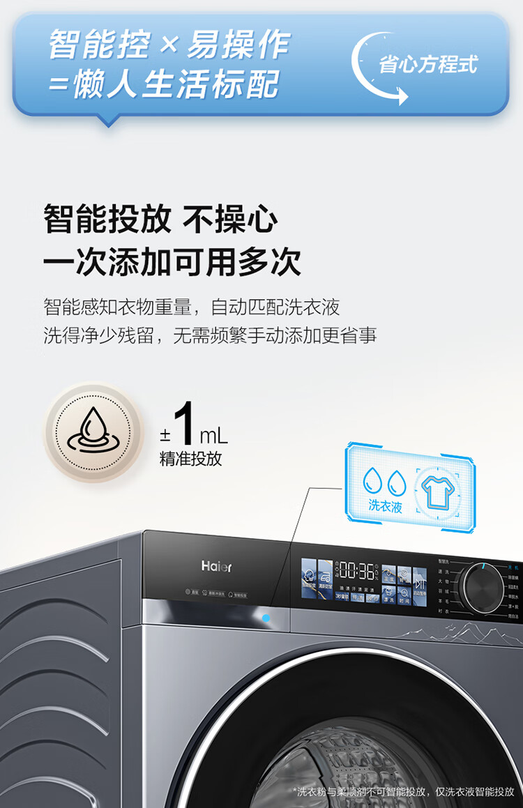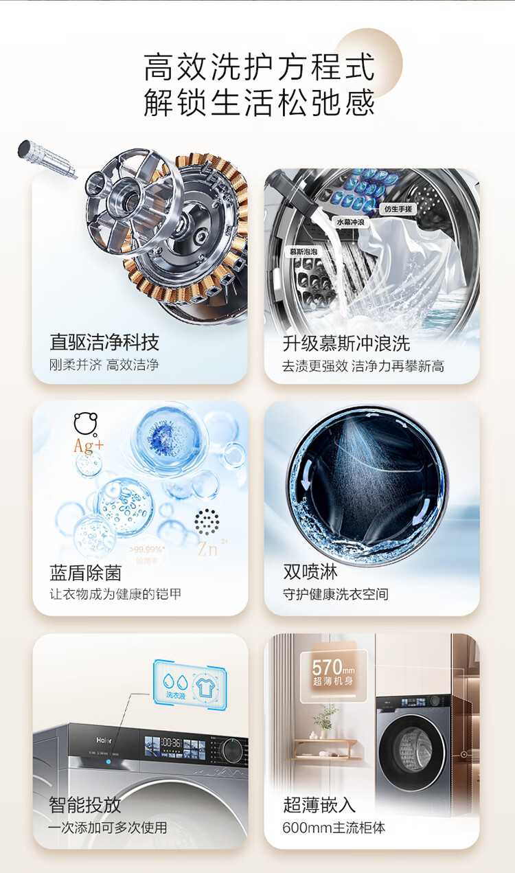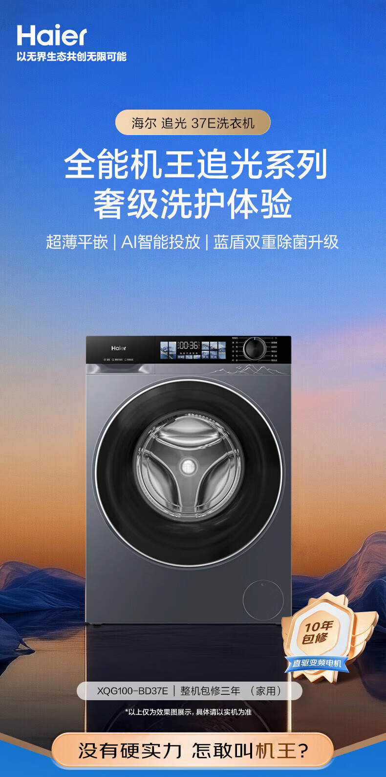 海尔滚筒洗衣机全自动 10公斤超薄家用直驱一级能效XQG100-BD37E洗净比1.15