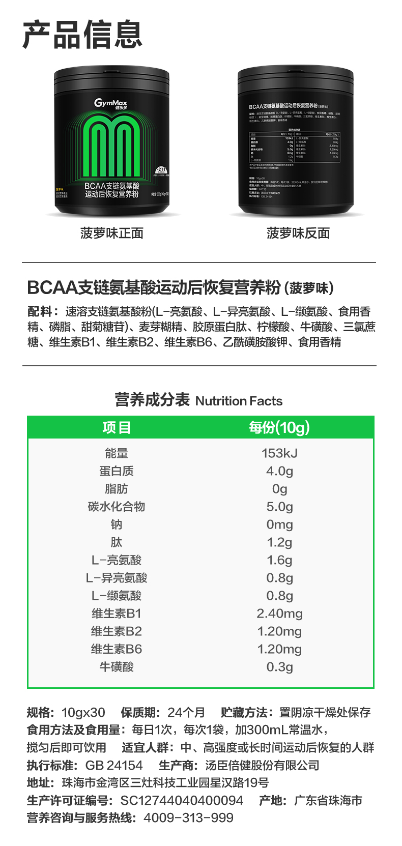 健乐多GymPro运动后恢复营养粉(支链氨基酸)(菠萝味)(30袋)