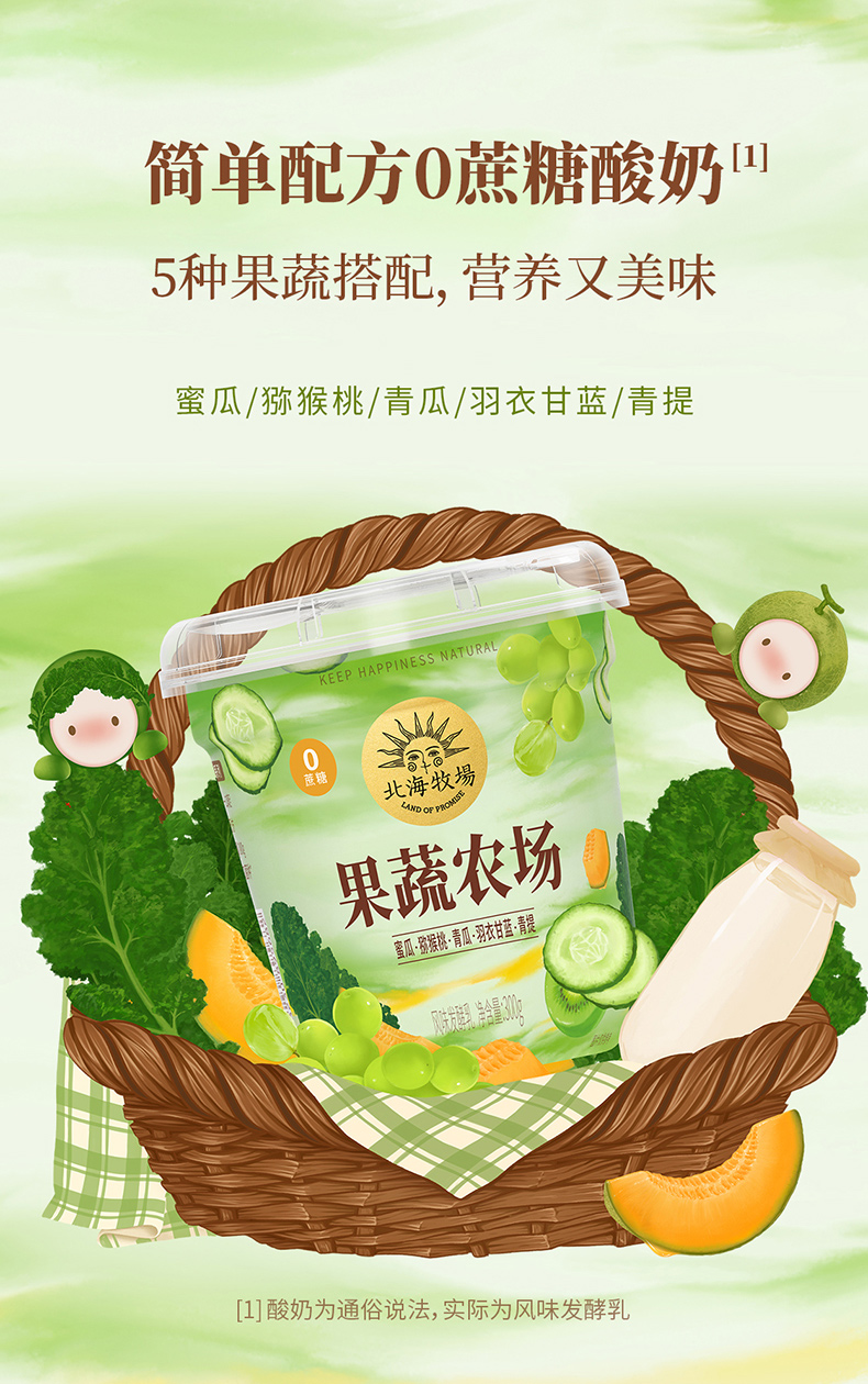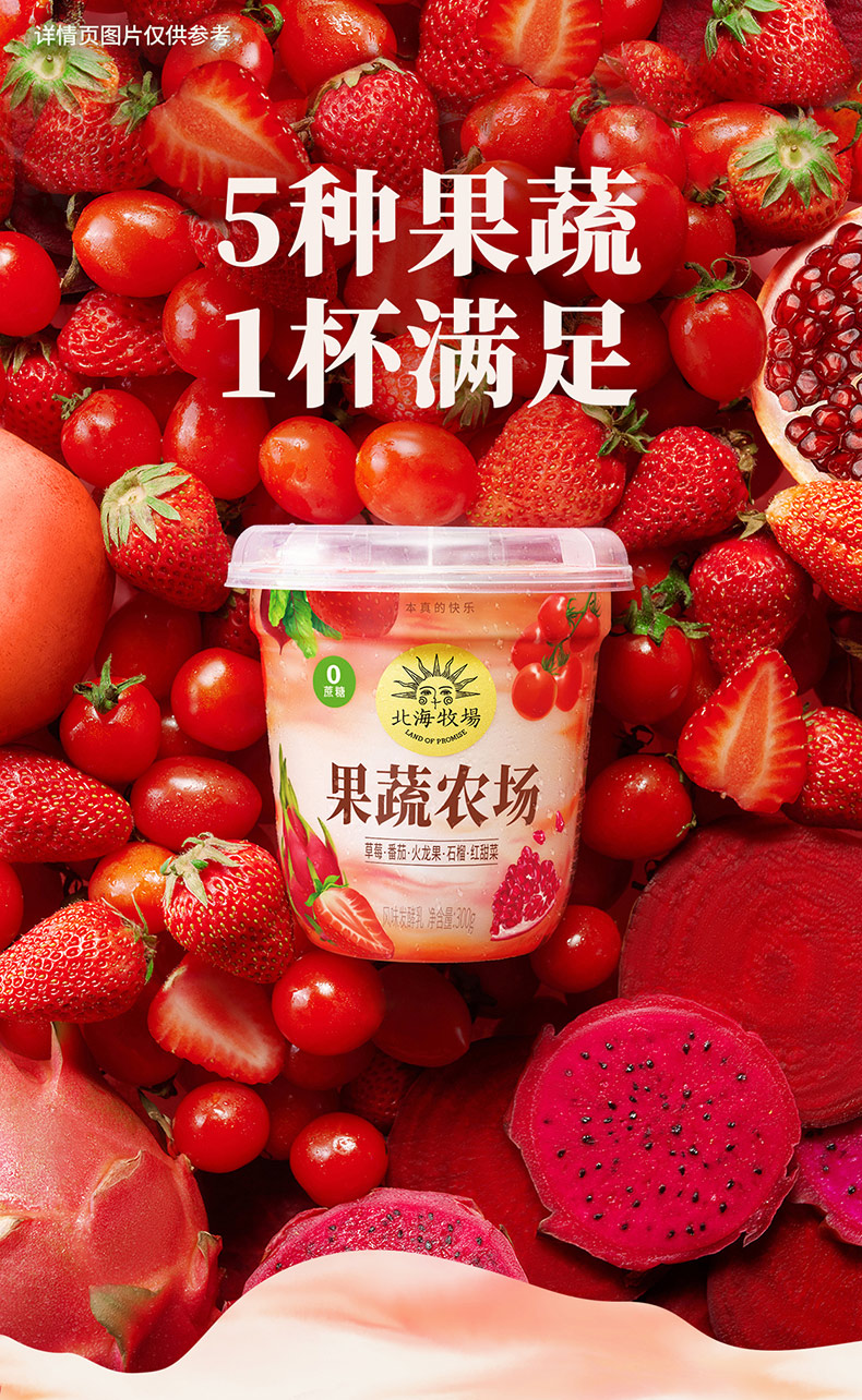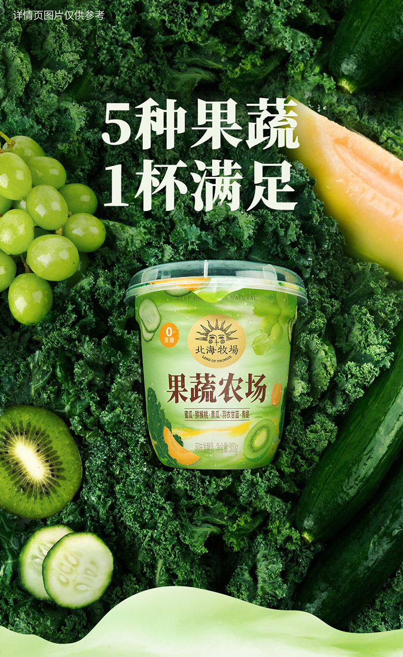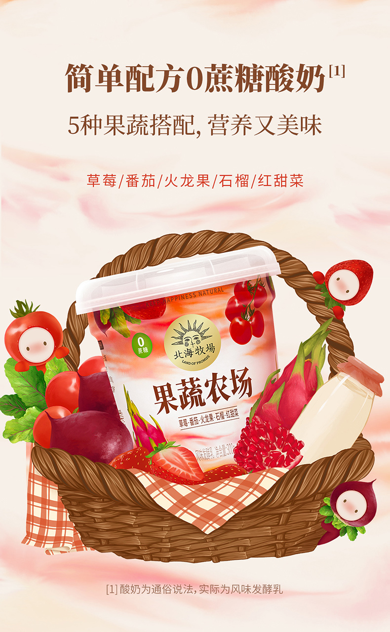 【新品】北海牧场果蔬农场0蔗糖酸奶5种果蔬风味发酵乳300g*6杯