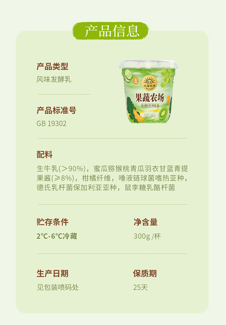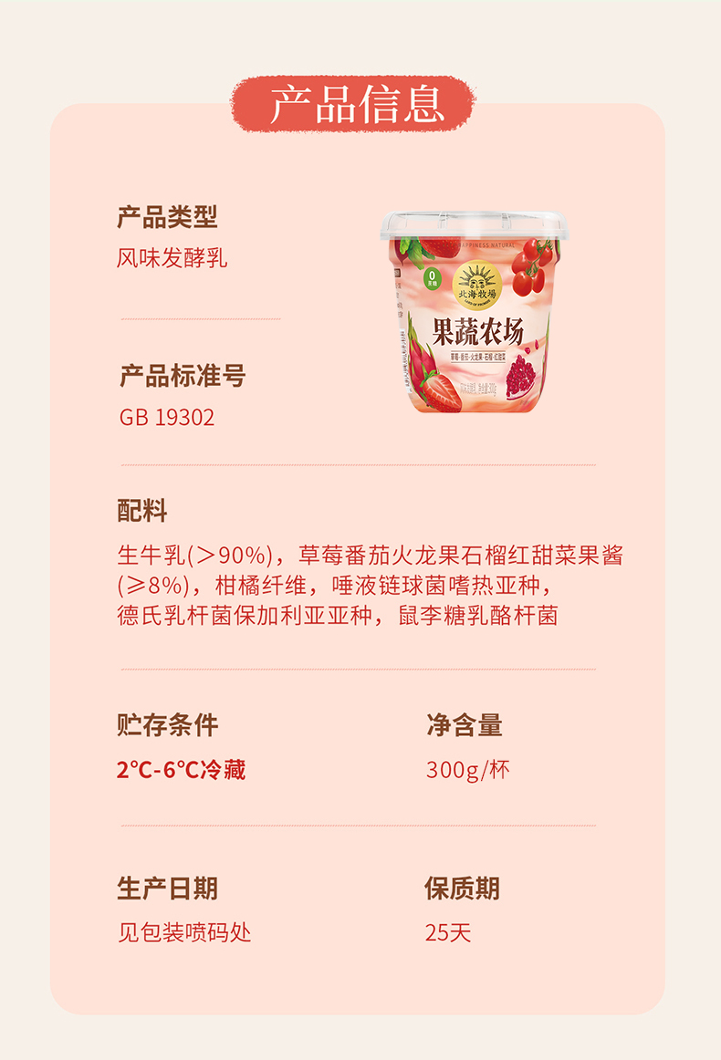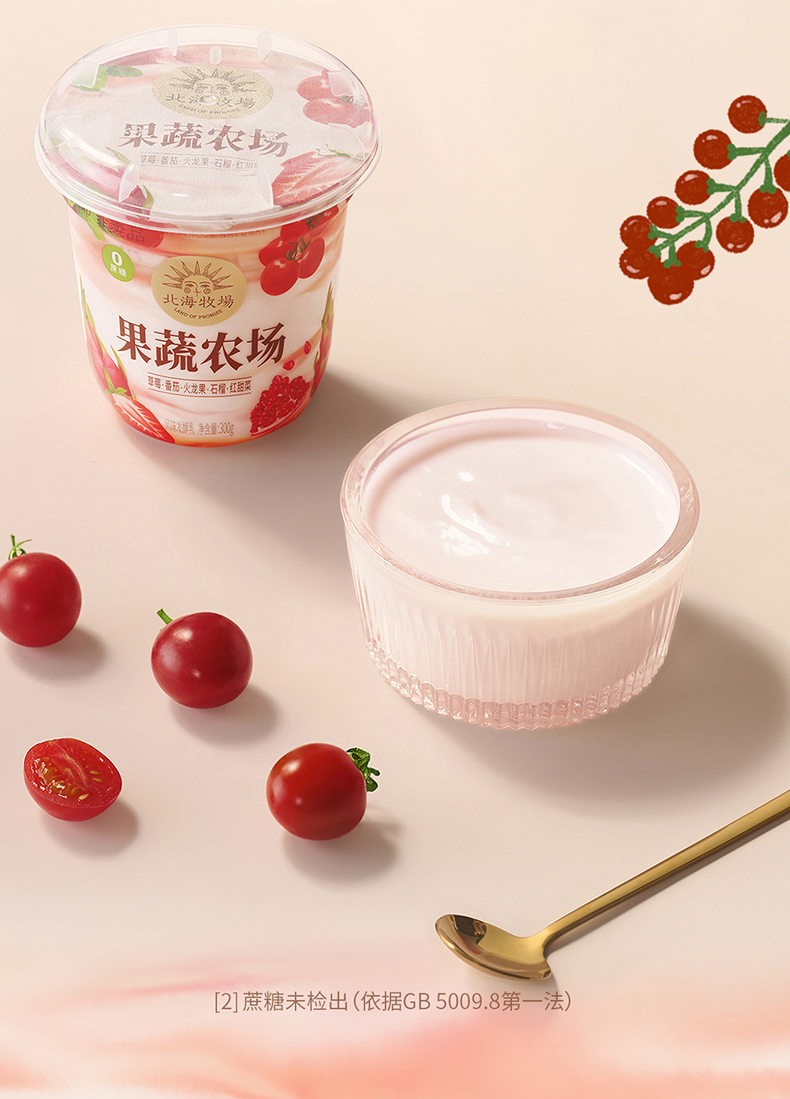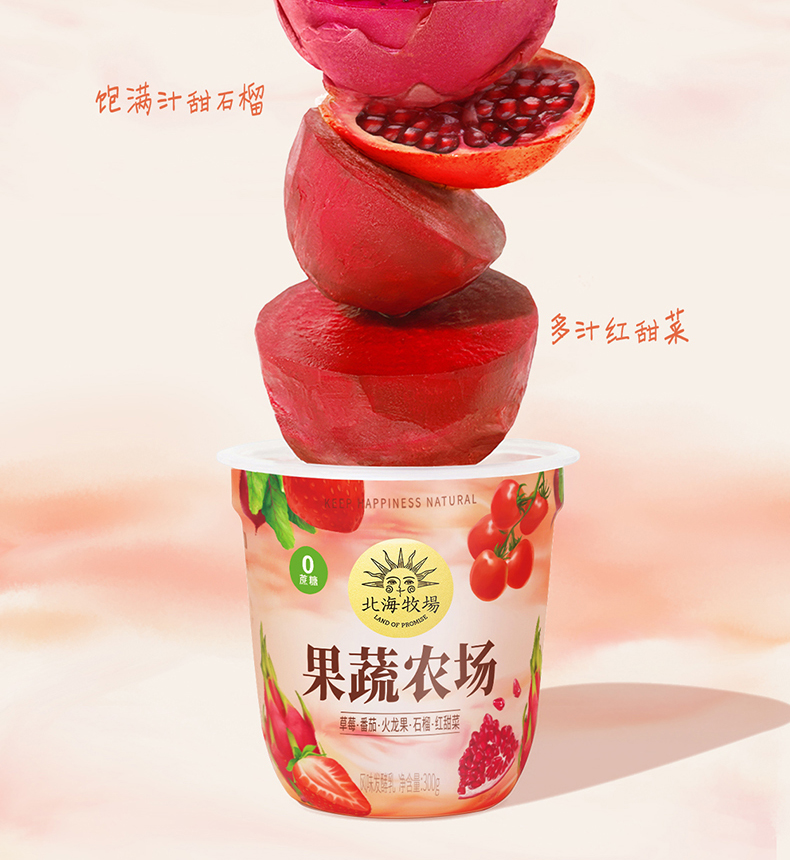 【新品】北海牧场果蔬农场0蔗糖酸奶5种果蔬风味发酵乳300g*6杯