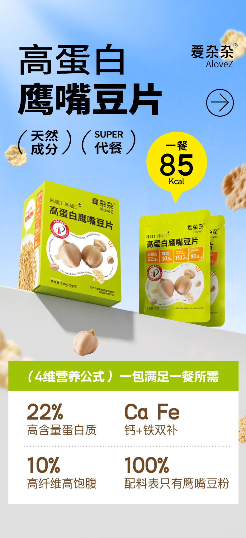 (糖友云健康)爱杂杂高蛋白鹰嘴豆片健身代餐蛋白慢碳调理胰岛素抵抗全谷物早餐