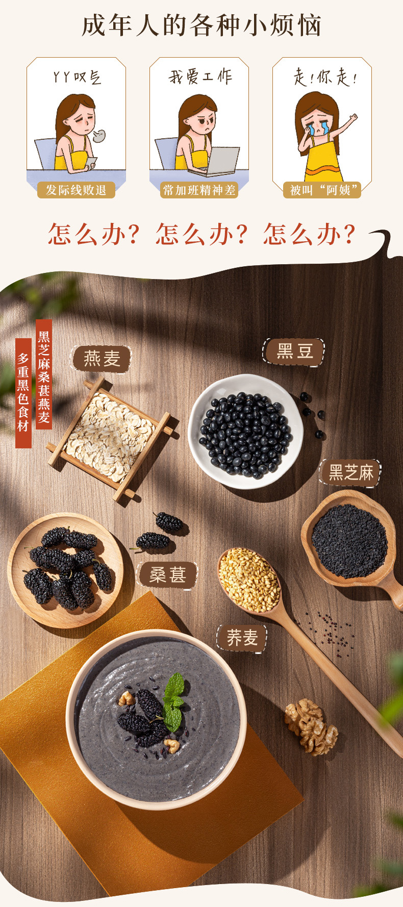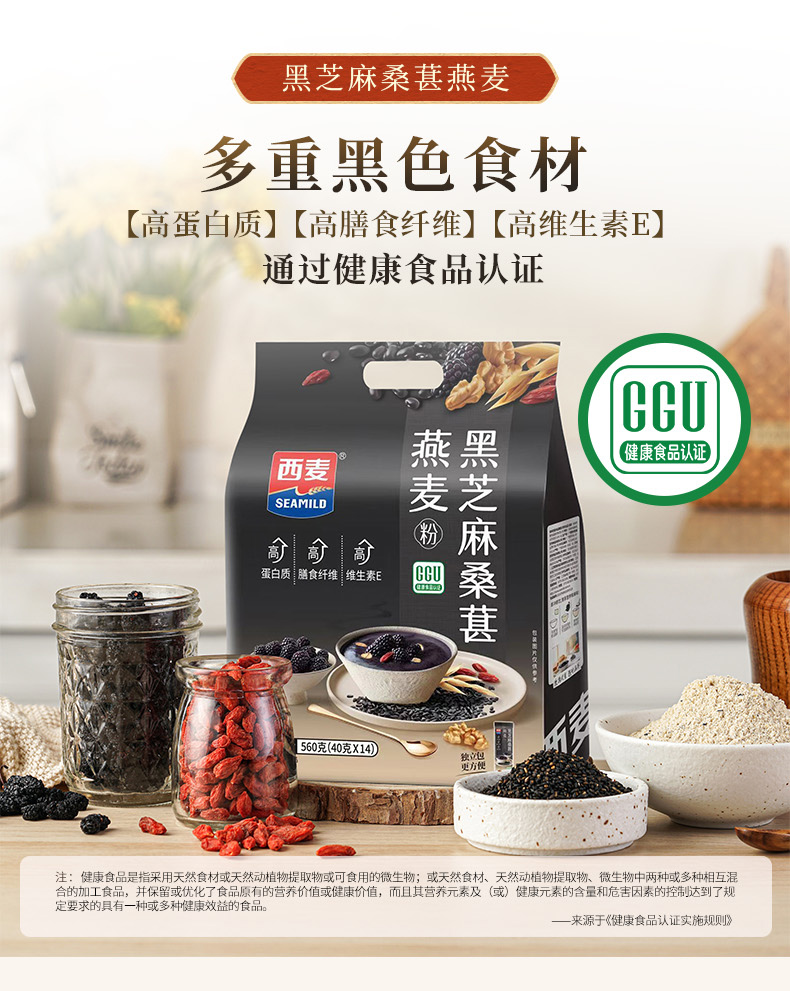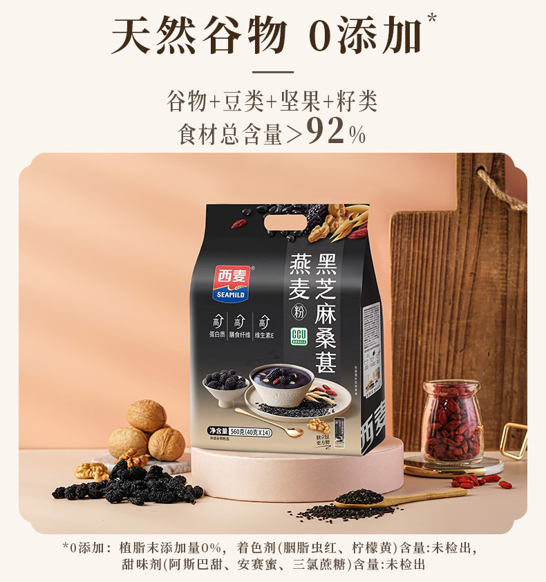 黑芝麻桑葚燕麦粉560g三重高营养配方0蔗糖健康食品认证即食谷物营养粉