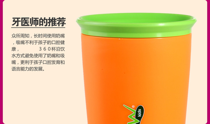 【买一赠一】安思培WOW360°儿童饮水杯 266ml(留言标注赠送颜色)
