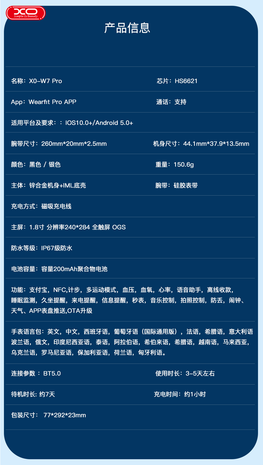智能运动通话手表XO-W7 Pro