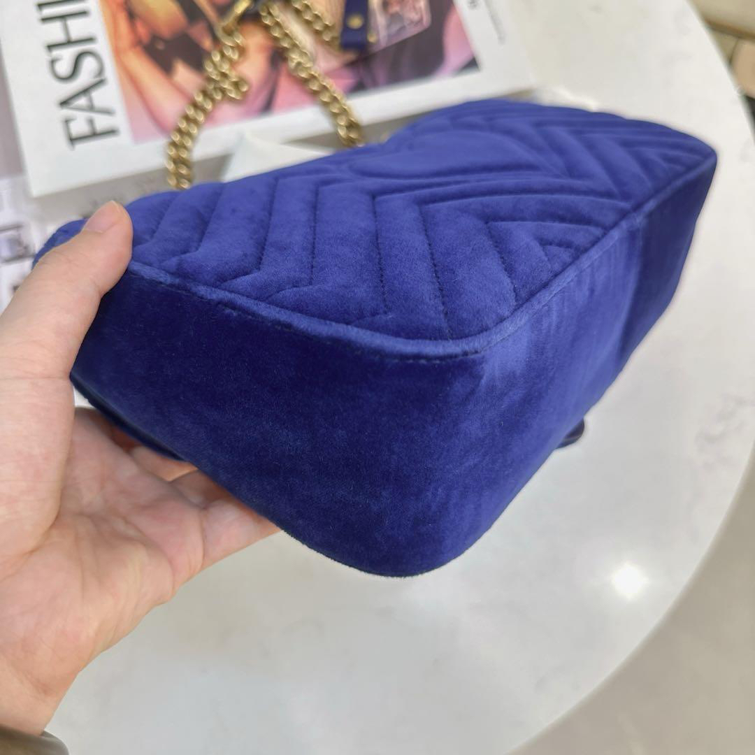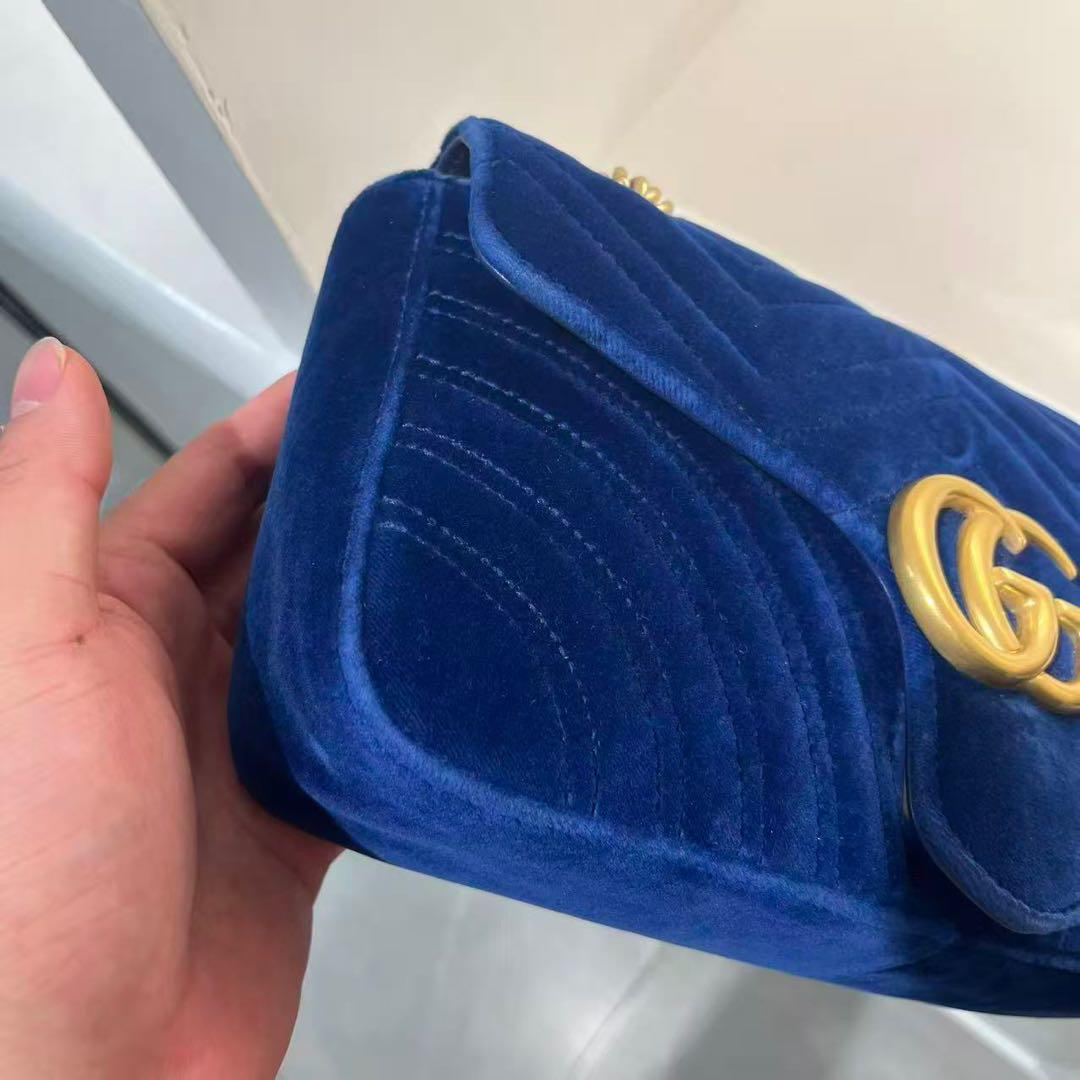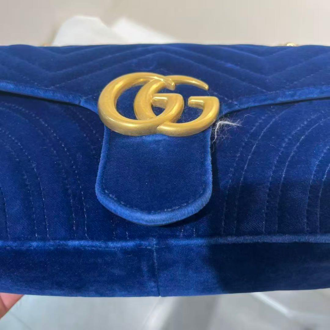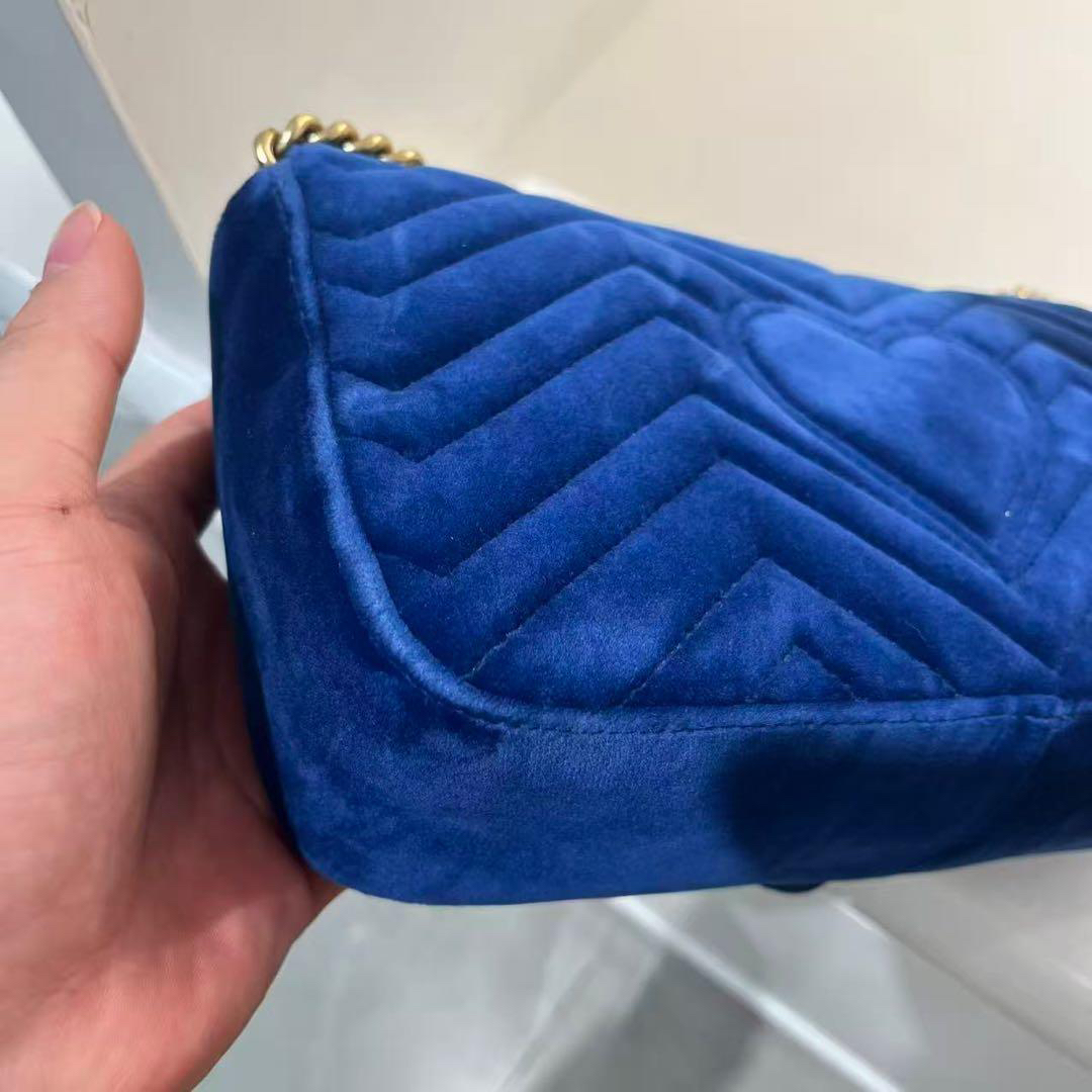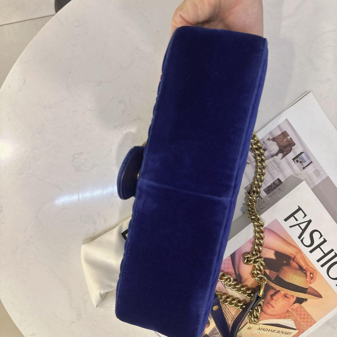 正品二手 Gucci 马蒙 中号 宝蓝色 丝绒 斜挎包🌍98新 26×16 配件:防尘袋。丝绒材质相贵气感重十足