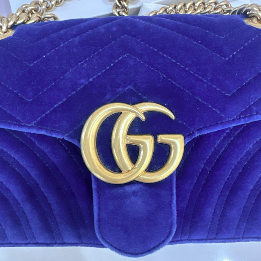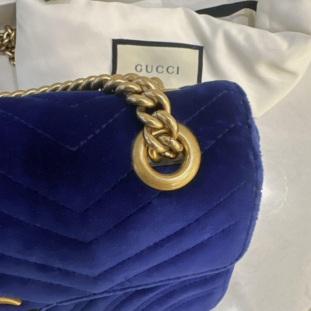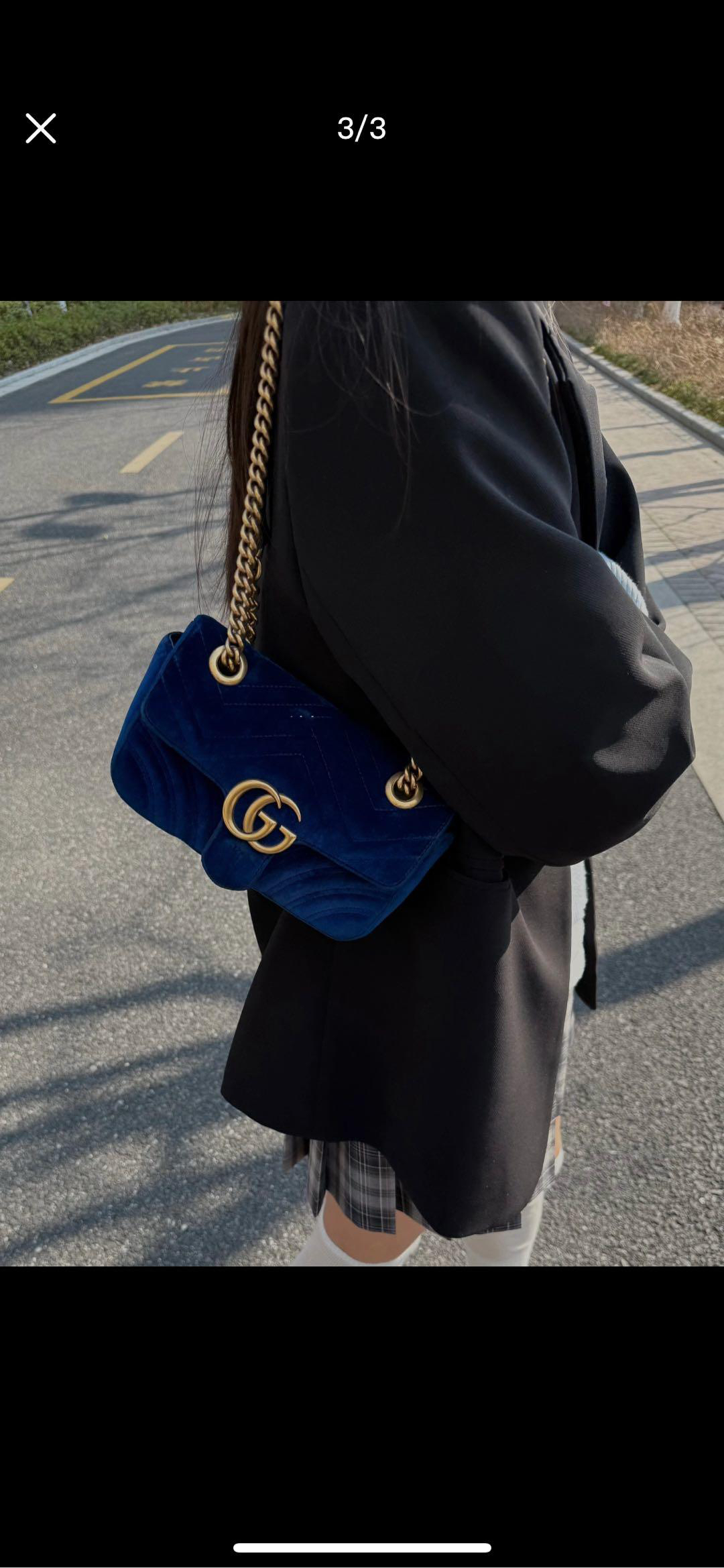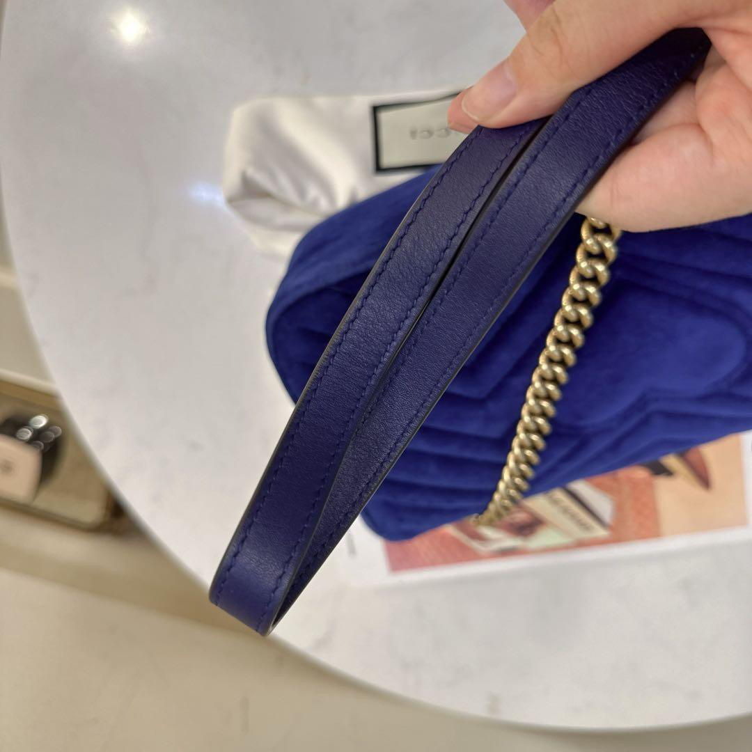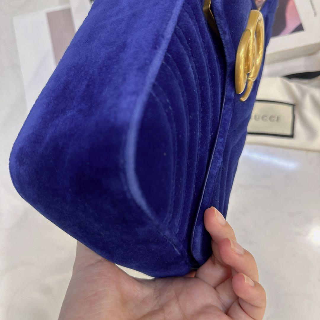 正品二手 Gucci 马蒙 中号 宝蓝色 丝绒 斜挎包🌍98新 26×16 配件:防尘袋。丝绒材质相贵气感重十足