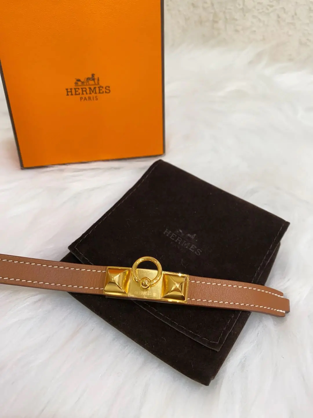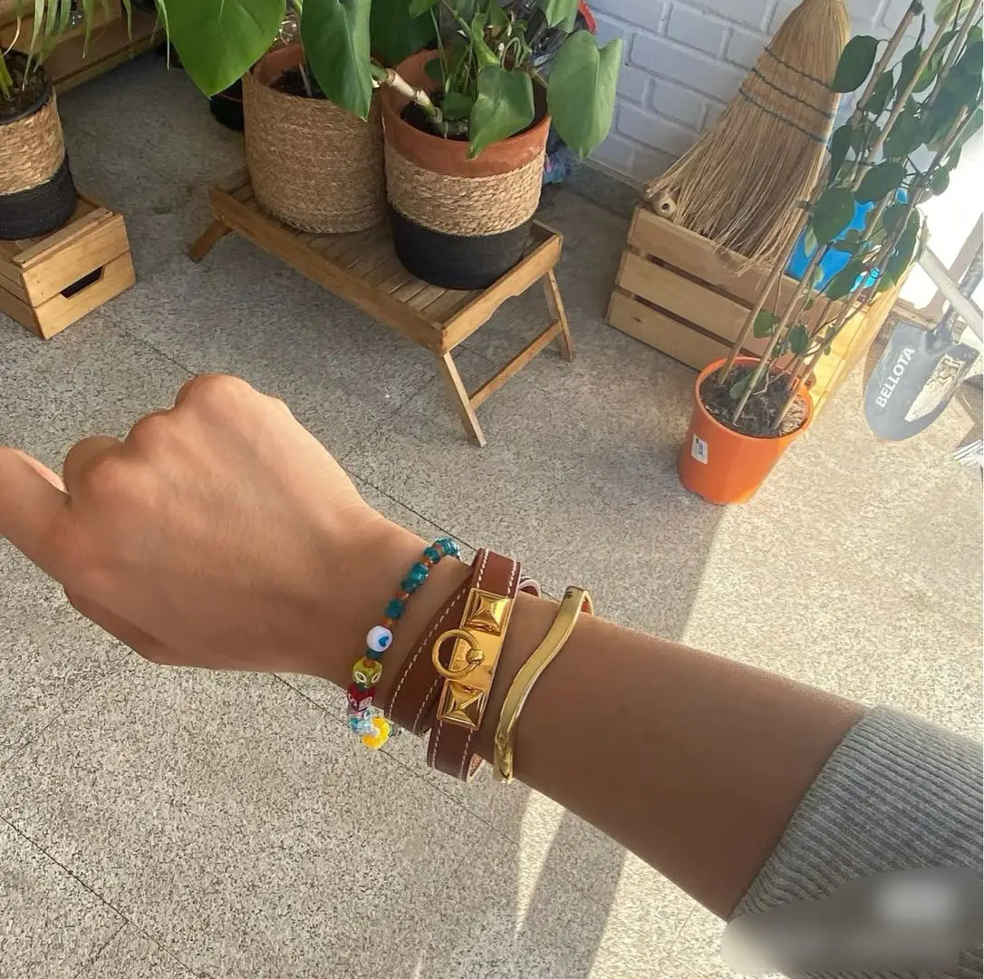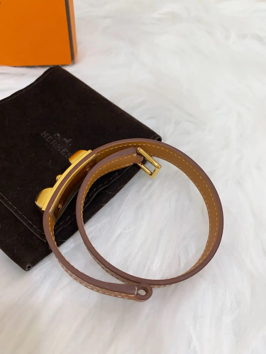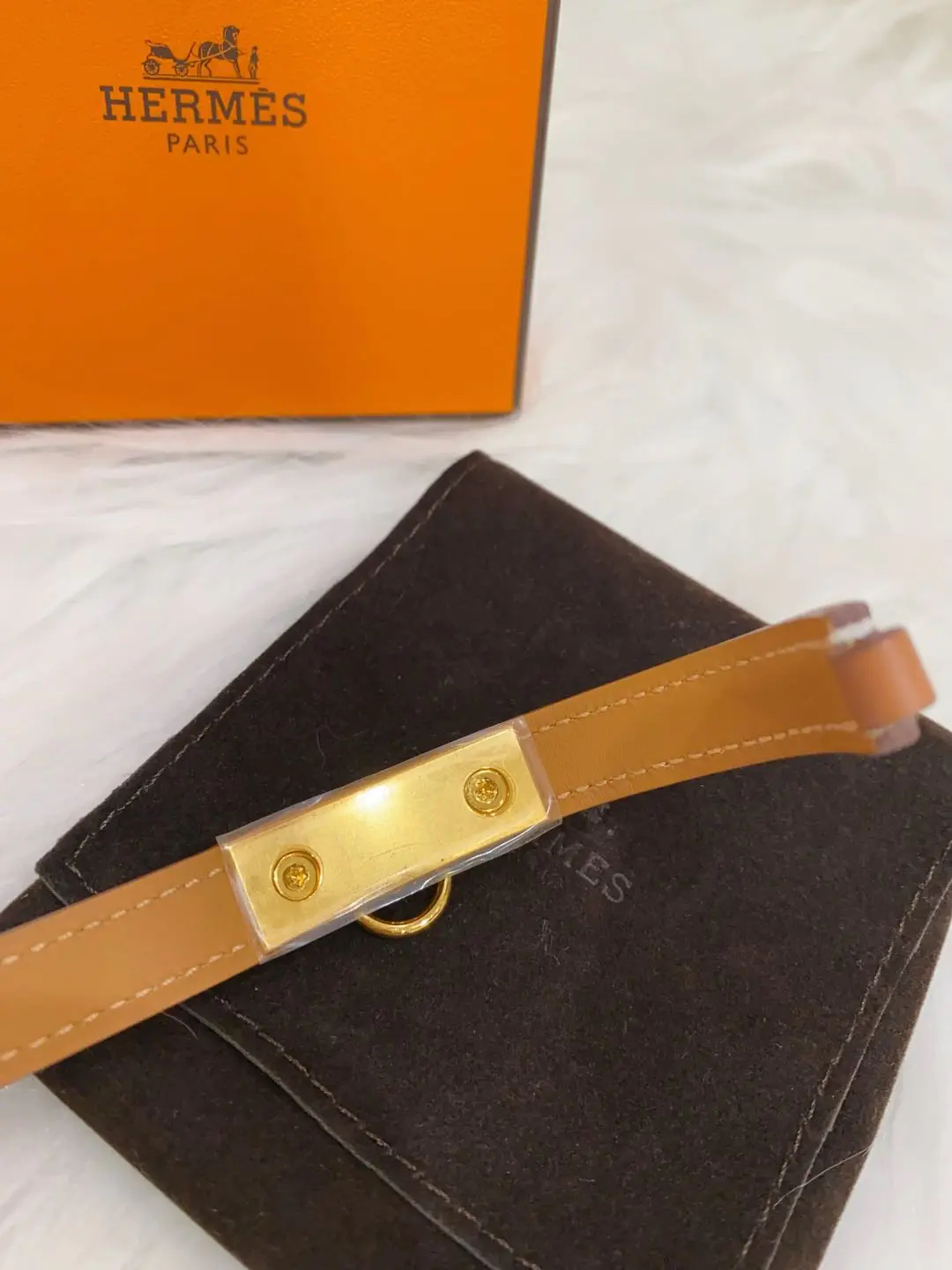 【商品详情】正品二手 爱马仕 Rivale mini 玫瑰金 金棕 牛皮 手环🎁 99新 15cm Y刻 配件:防尘袋 盒子。自用送人非常可