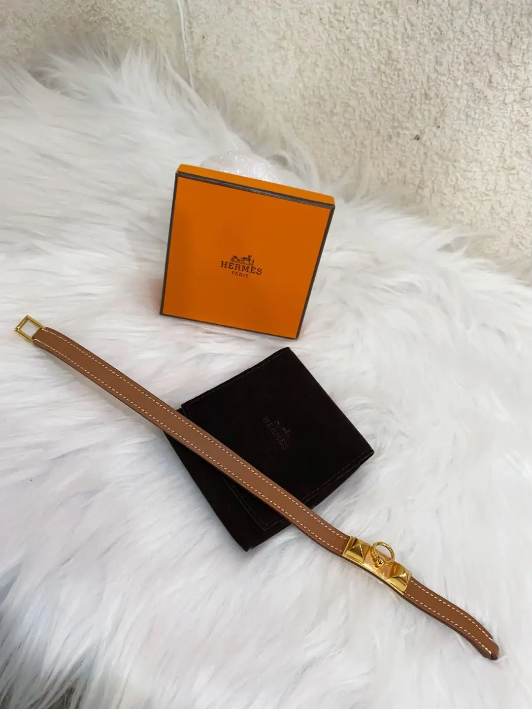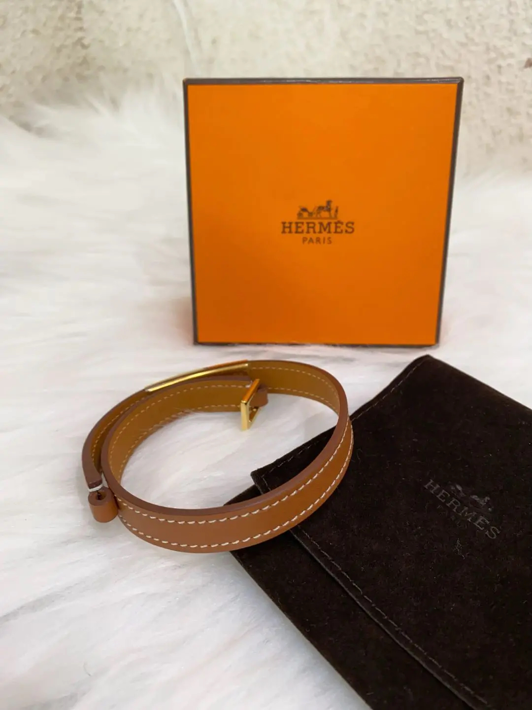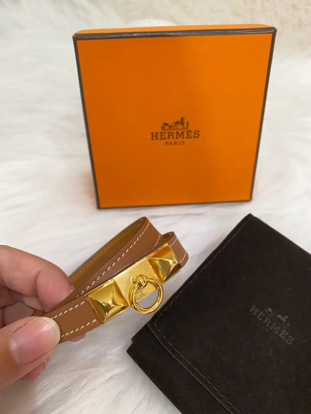 【商品详情】正品二手 爱马仕 Rivale mini 玫瑰金 金棕 牛皮 手环🎁 99新 15cm Y刻 配件:防尘袋 盒子。自用送人非常可