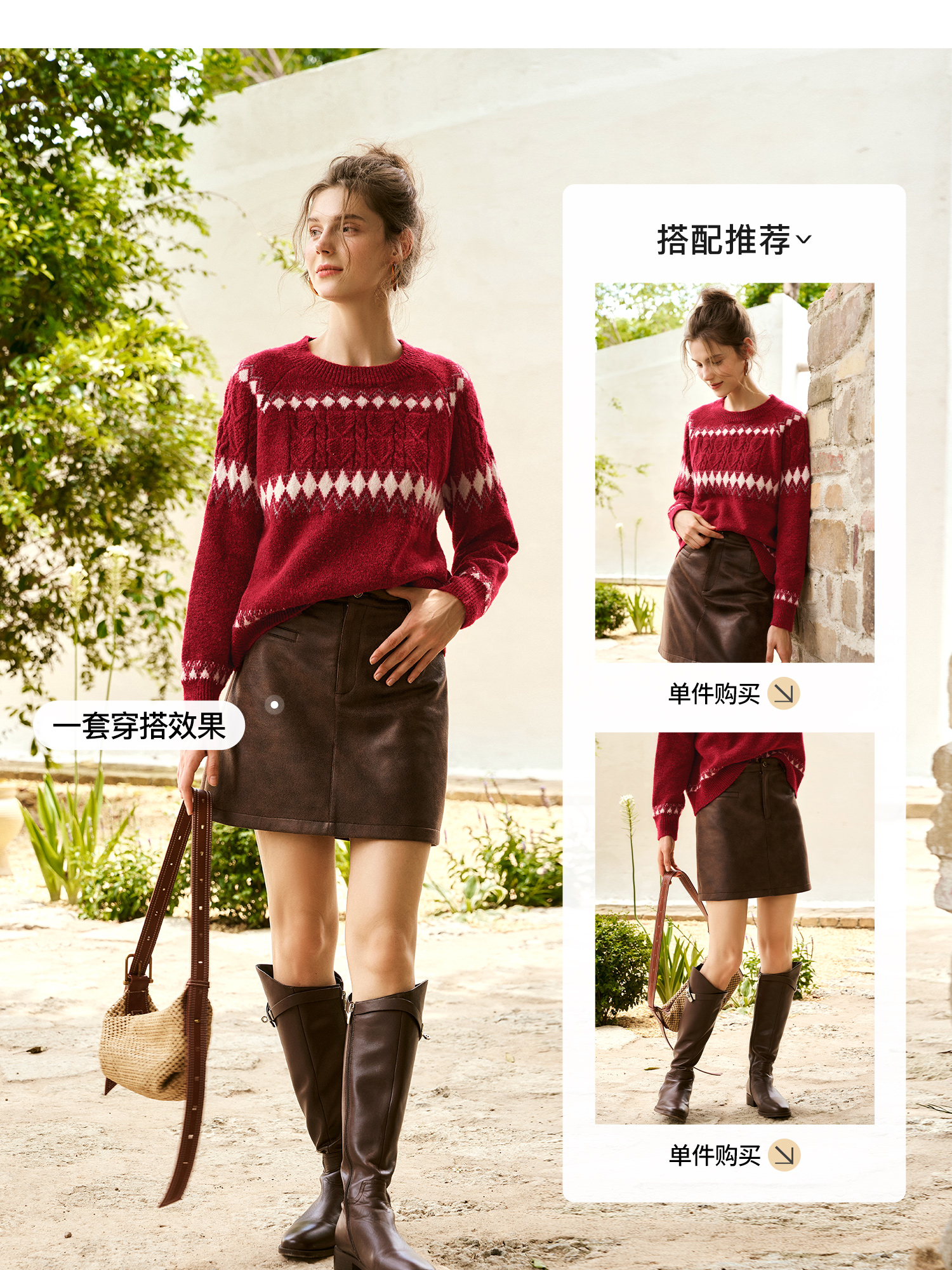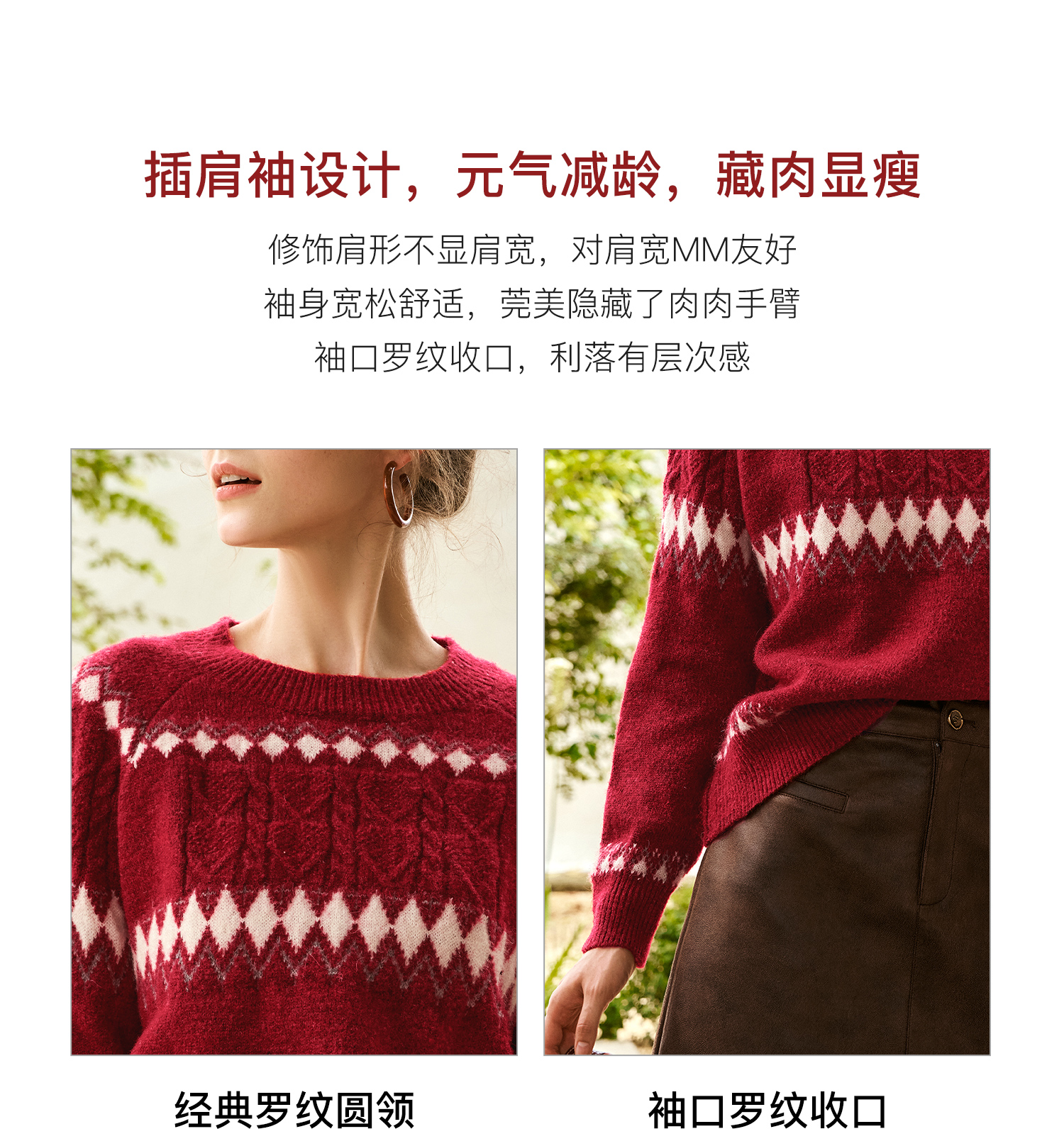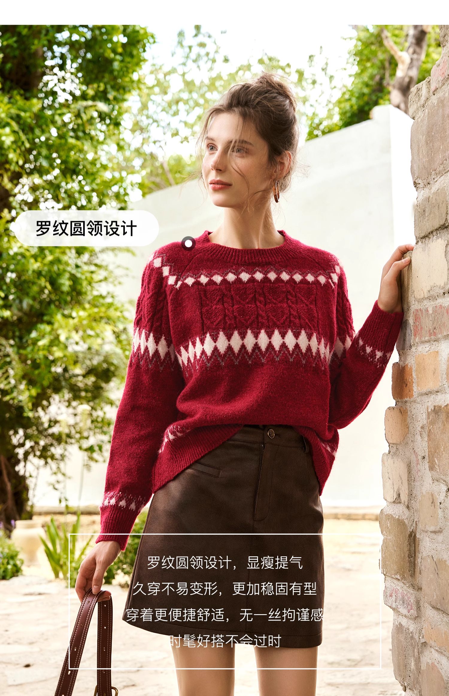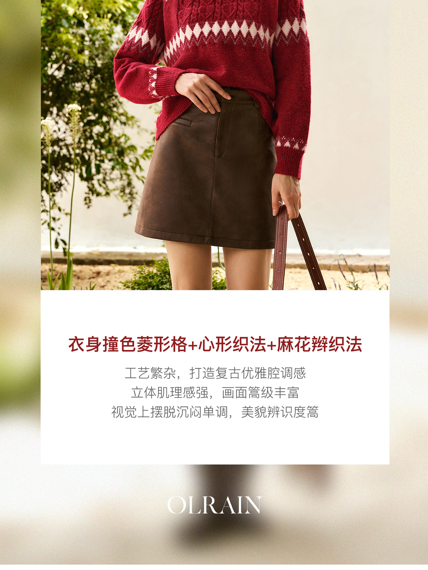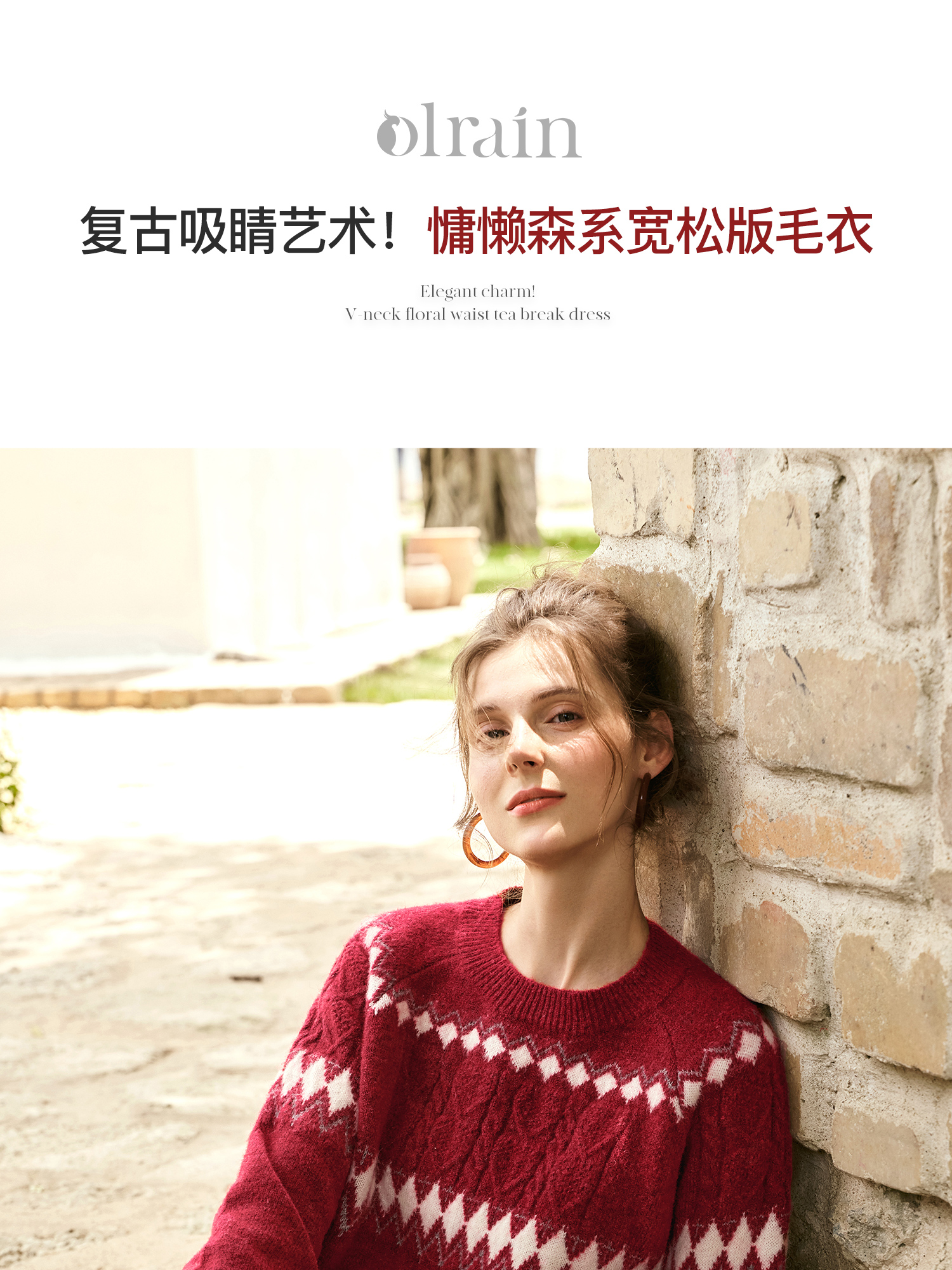 OLrain欧芮儿红色圆领毛衣女秋季2024年新款森系慵懒风套头上衣