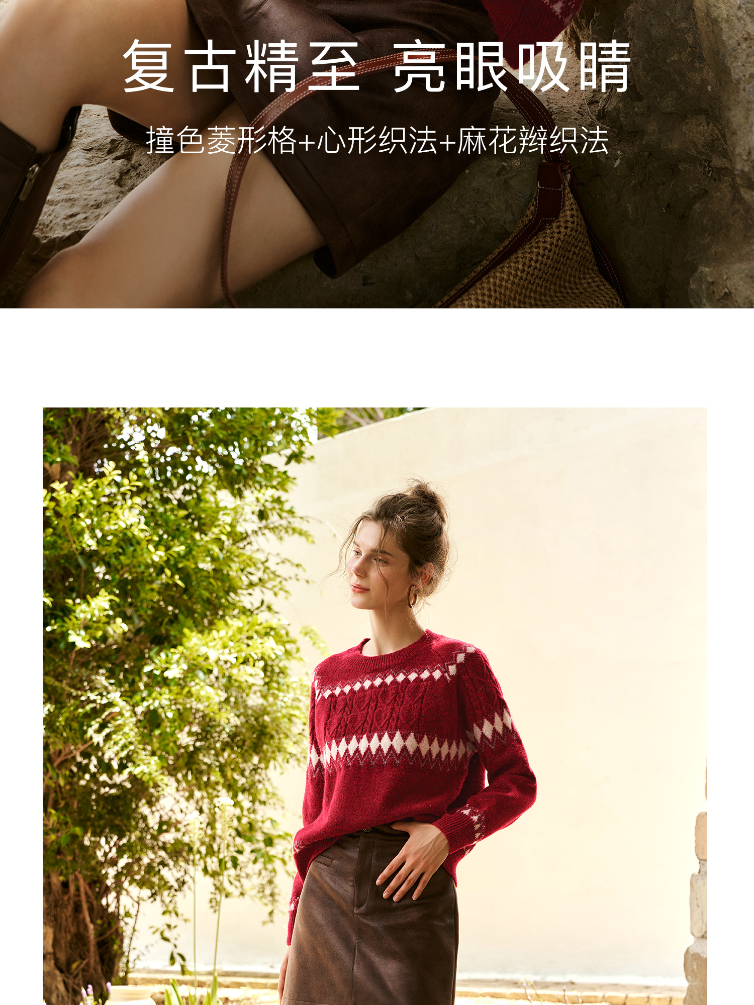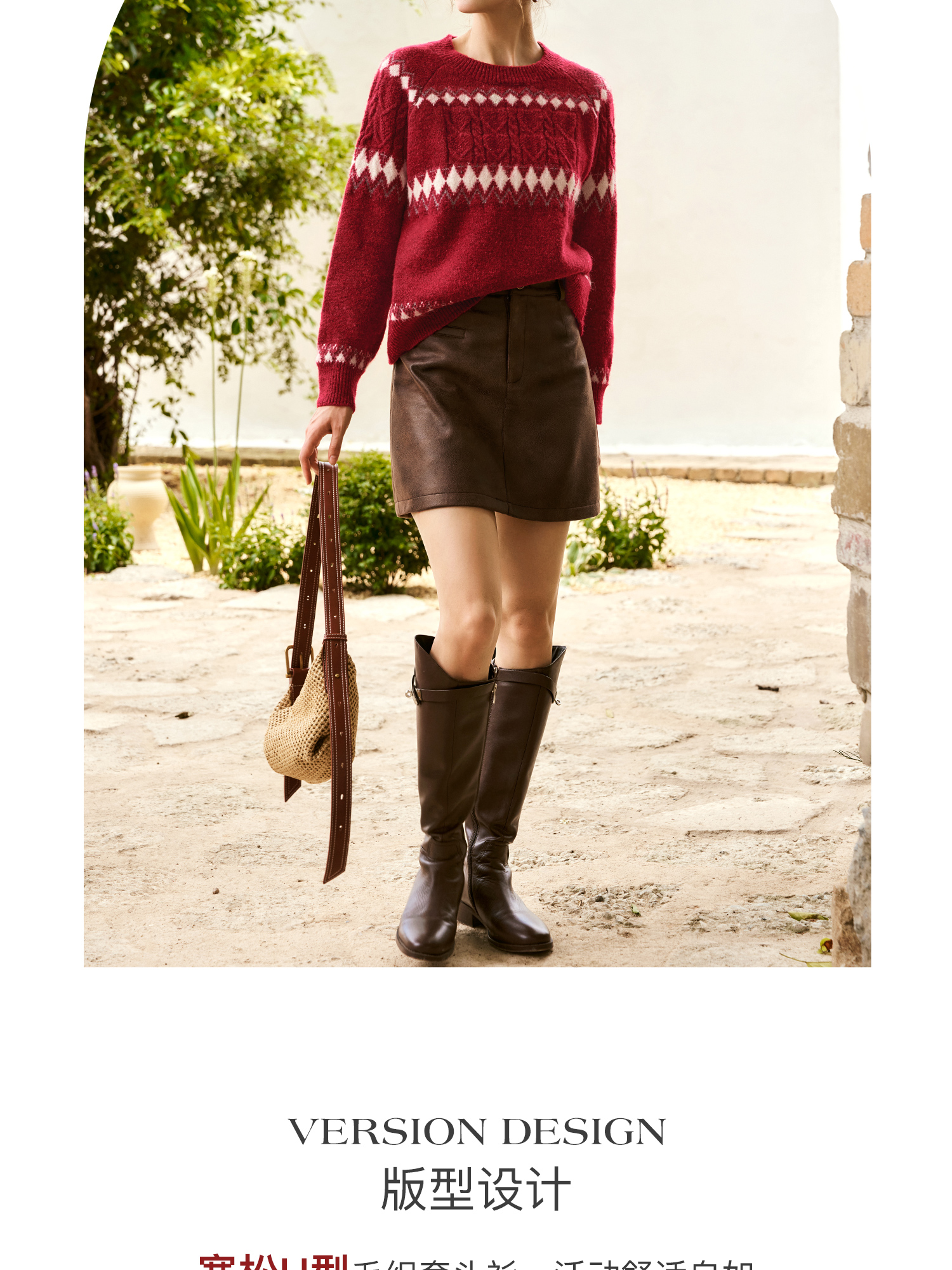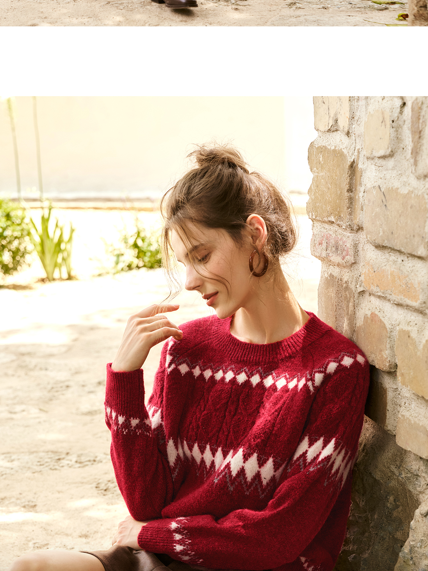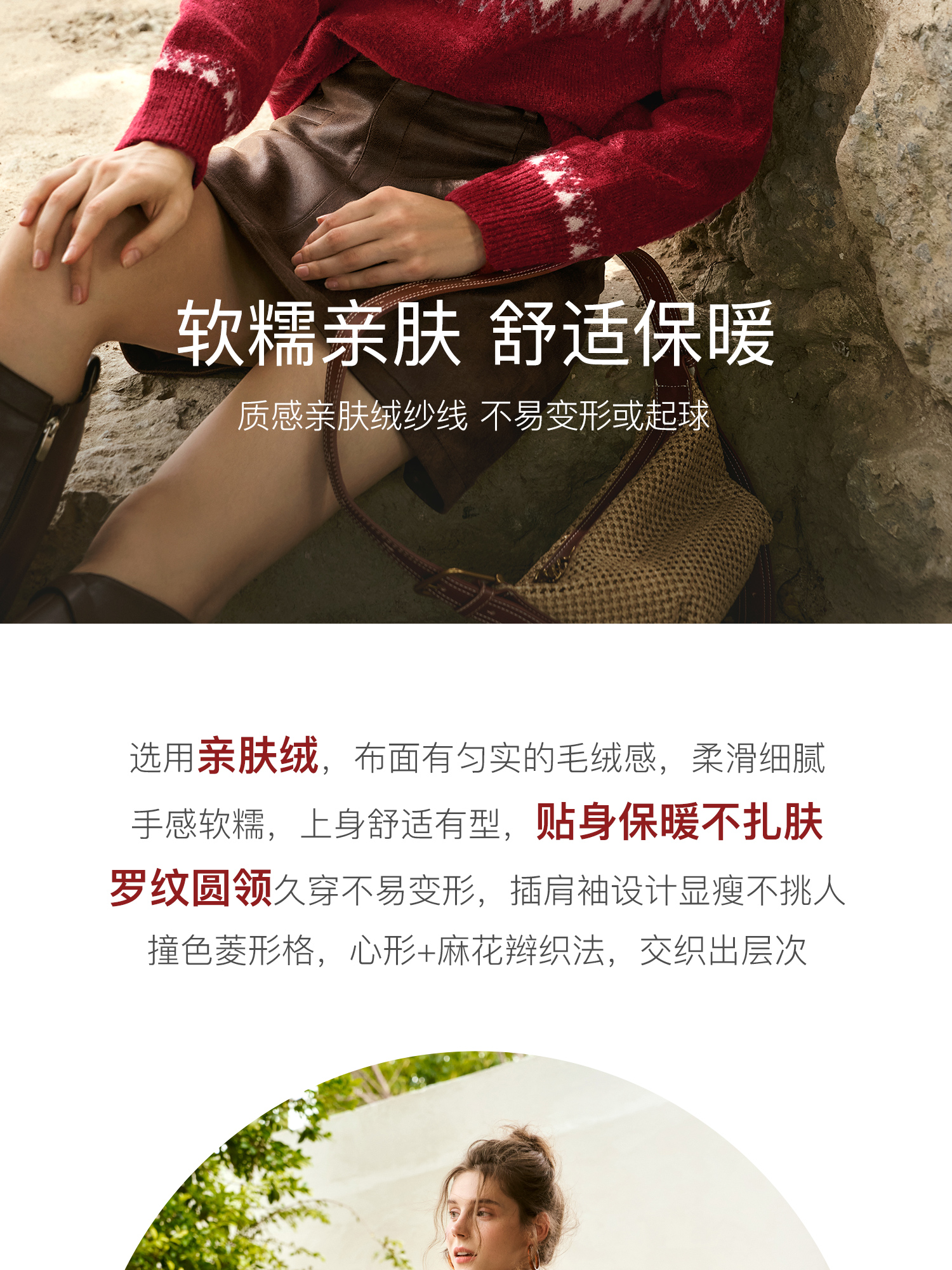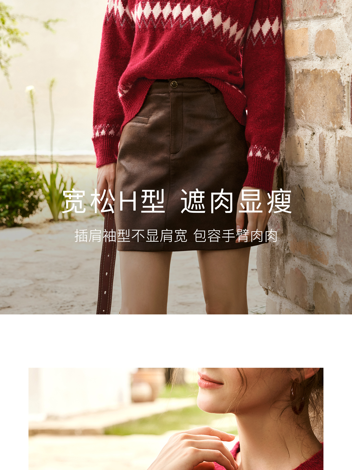 OLrain欧芮儿红色圆领毛衣女秋季2024年新款森系慵懒风套头上衣